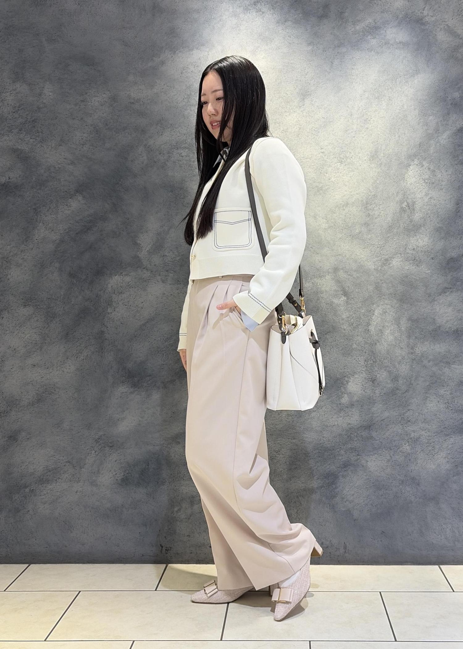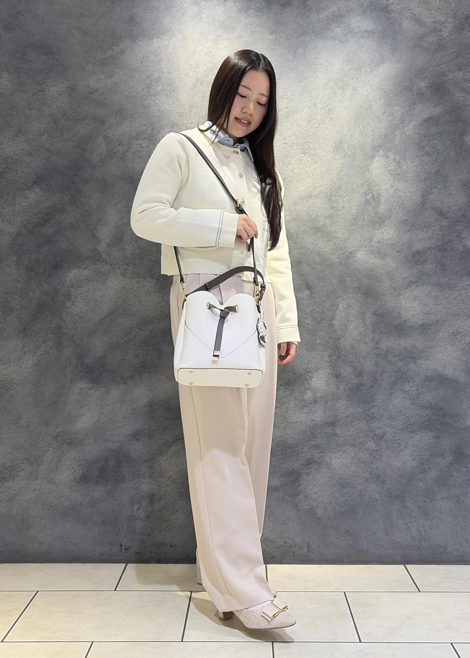 VIS【HELLO KITTY×VIS】ハートカットバッグオフホワイト / F¥7,909レビューコラボアイテムのバッグは口が広く開くので、荷物の出し入れがしやすいなと感じました。また、ショルダーバッグなので、両手が使えるのも嬉しいポイントです!キティちゃんのキーチャームがアクセントになるデザインで、甘めのコーデにピッタリです。