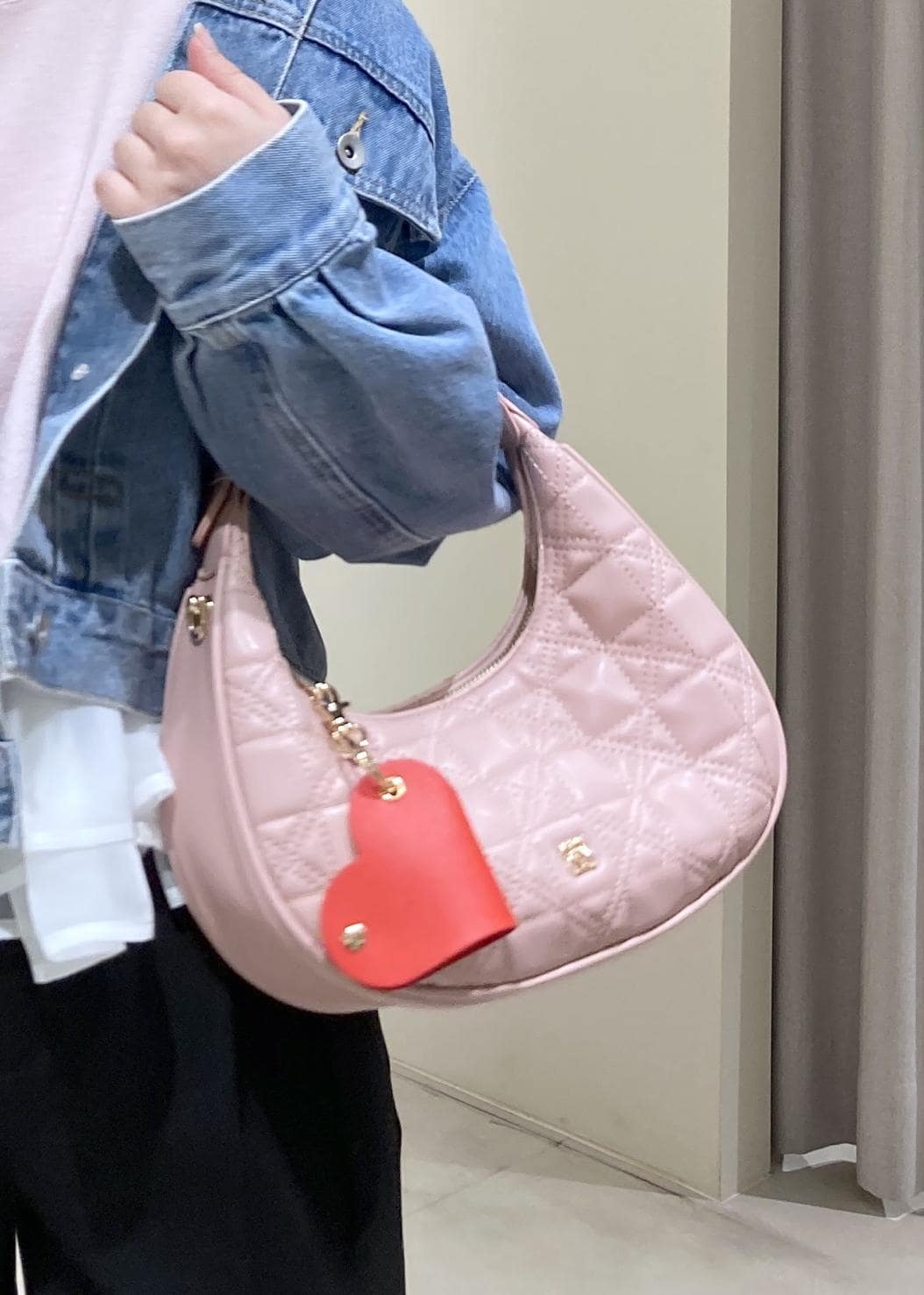 VISハートチャーム付き2WAYキルトバッグピンク系 / F¥6,919レビューサイズ感は長財布が入るくらいのサイズ感です。