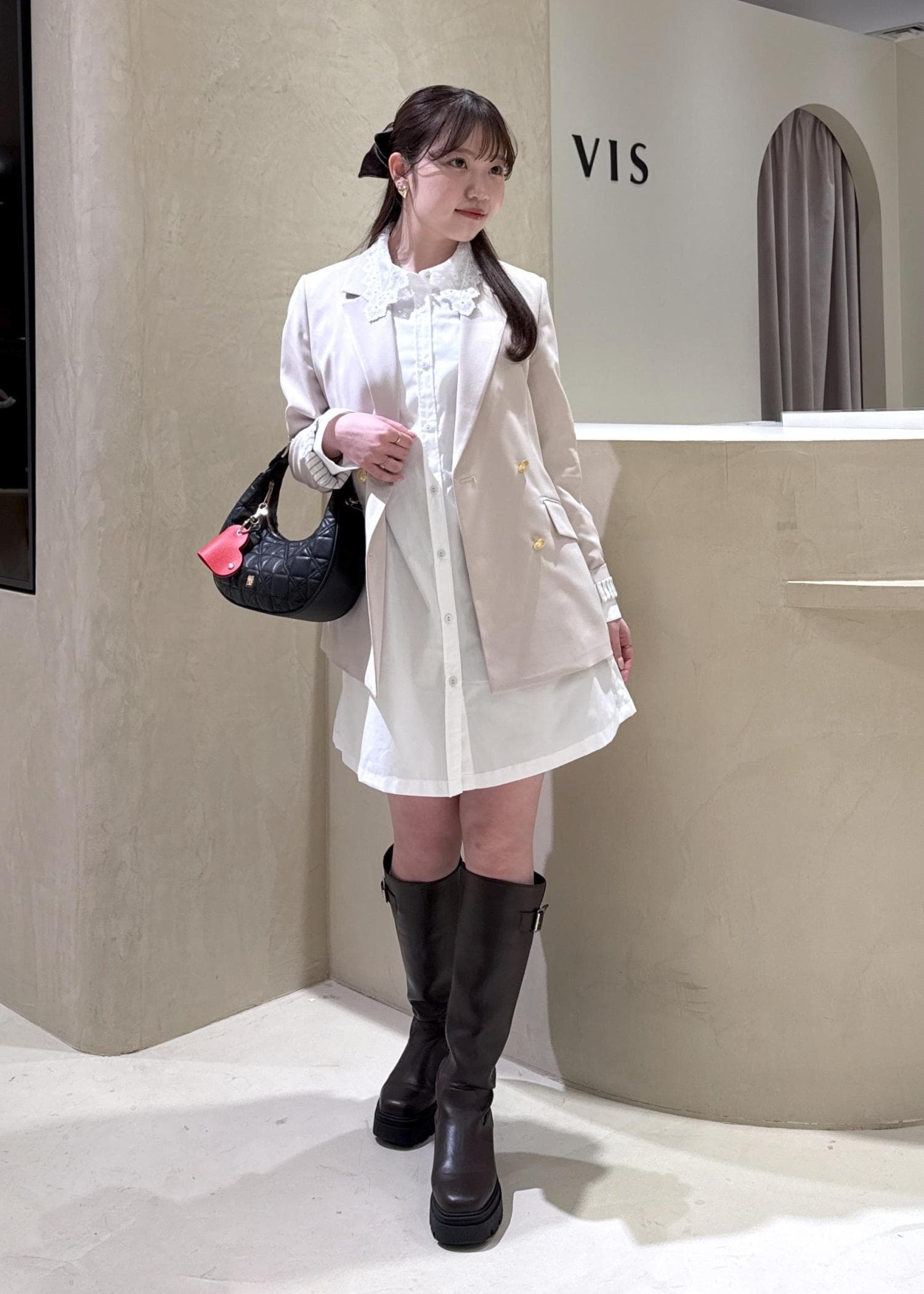 VIS襟レース付きミニ丈シャツワンピホワイト / F¥7,689レビュー襟がレースでポイント!フェミニンな印象に♡