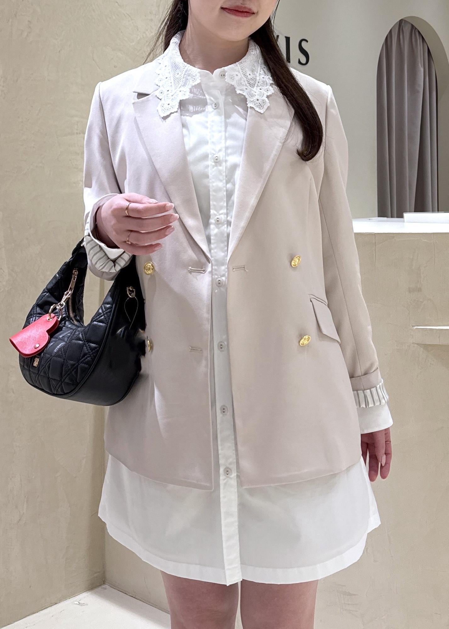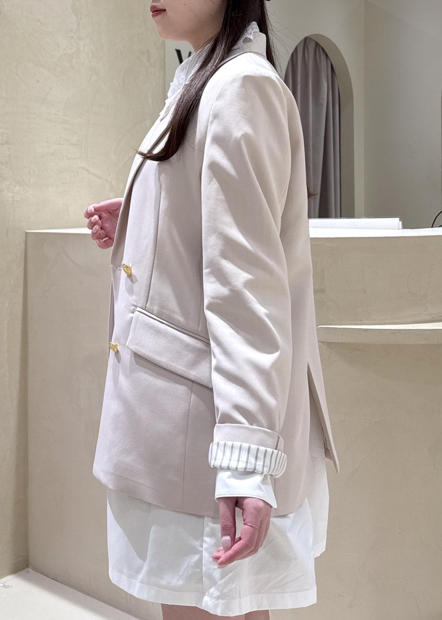 裏地がストライプなので、袖は曲げて敢えて裏地を見せるスタイリングもおすすめです◎ -