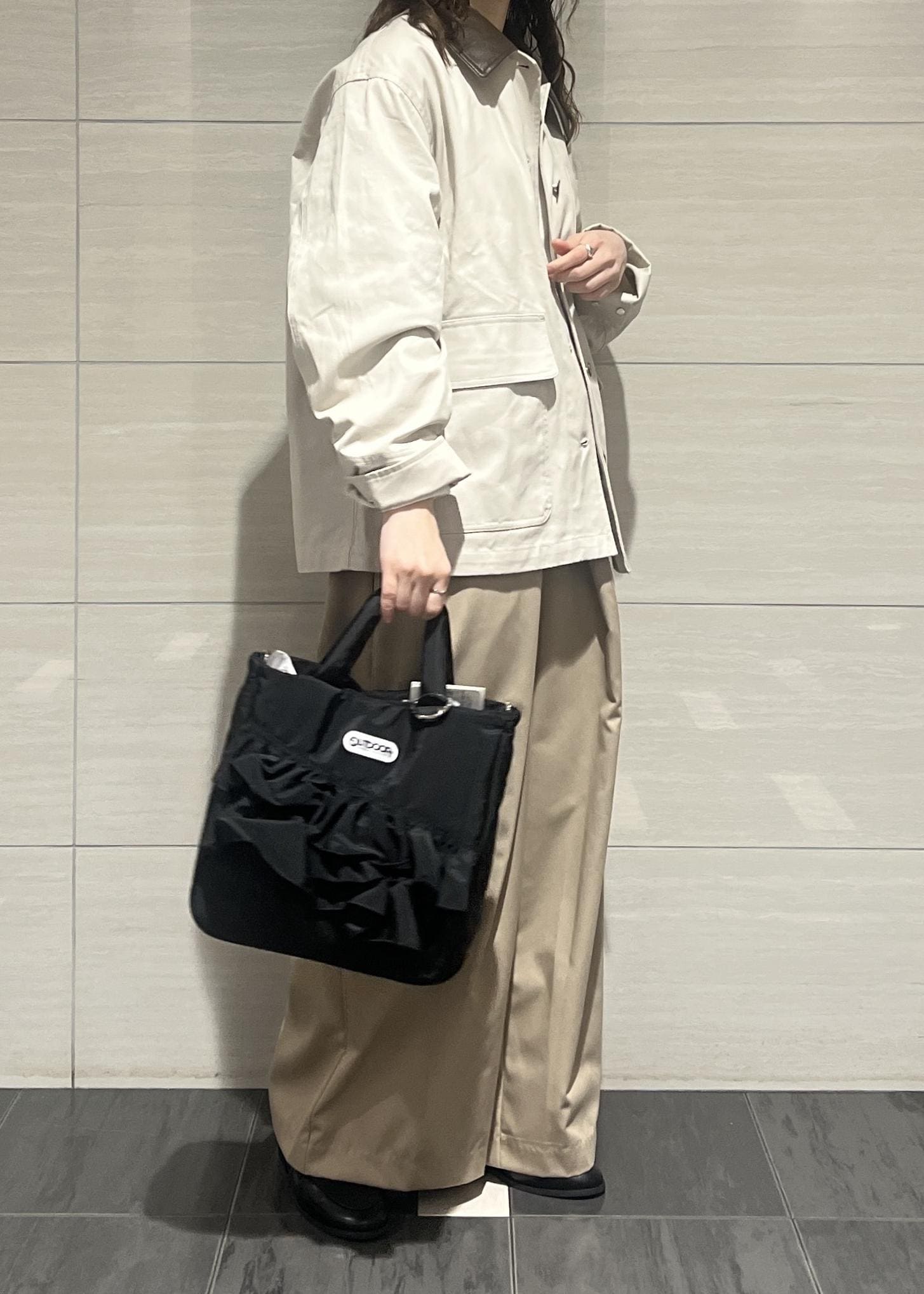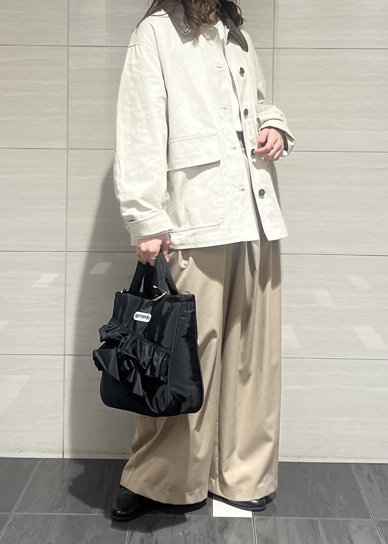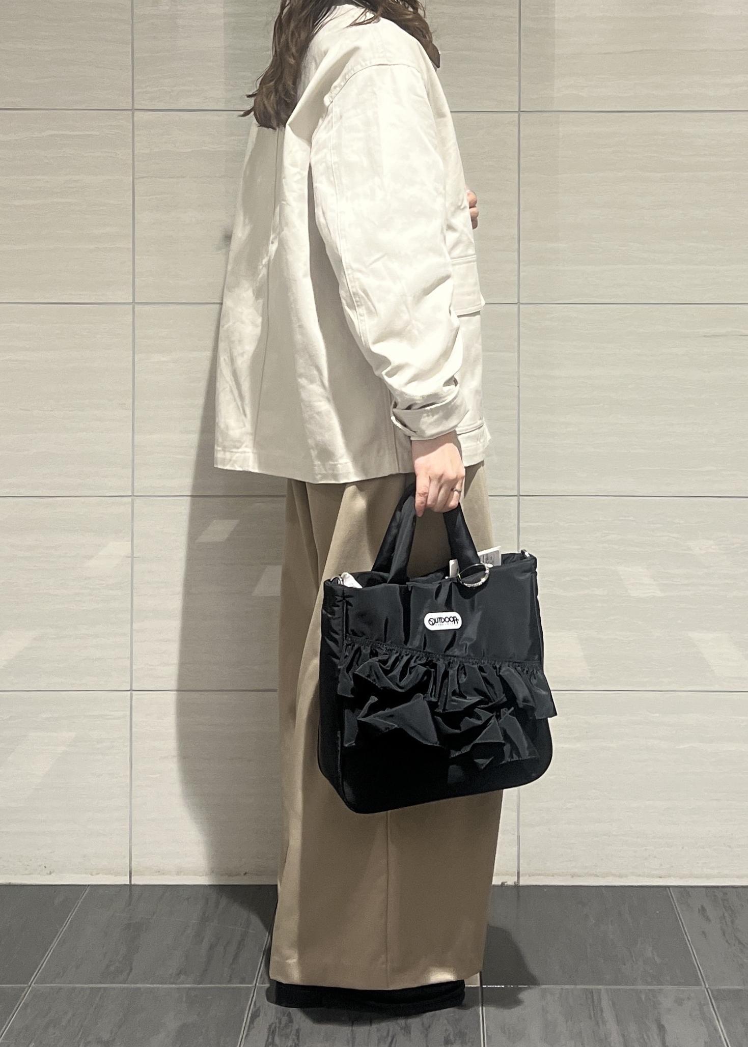 予約VIS【OUTDOOR PRODUCTS】VIS別注2WAYフリルトートバッグブラック / F¥8,580レビュー大人可愛いフリルのデザインが