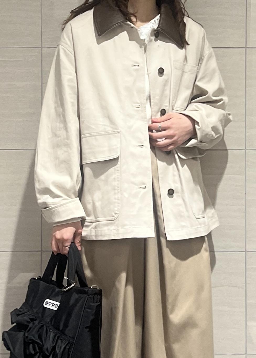 VISバイカラー衿カバーオールベージュ / F¥9,999レビュー152cmでお尻周りが隠れる着丈。袖も長めなのでロールアップすると抜け感も出て◎レザーの衿がトレンド感があり可愛いです!