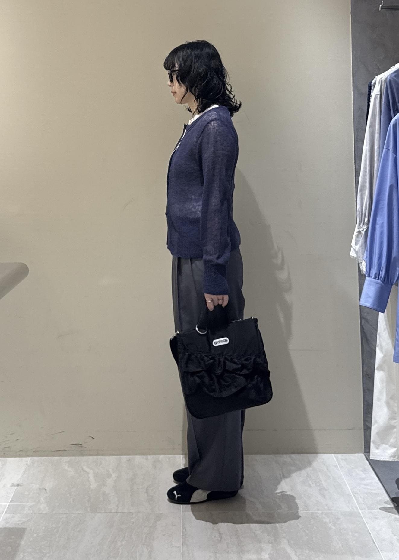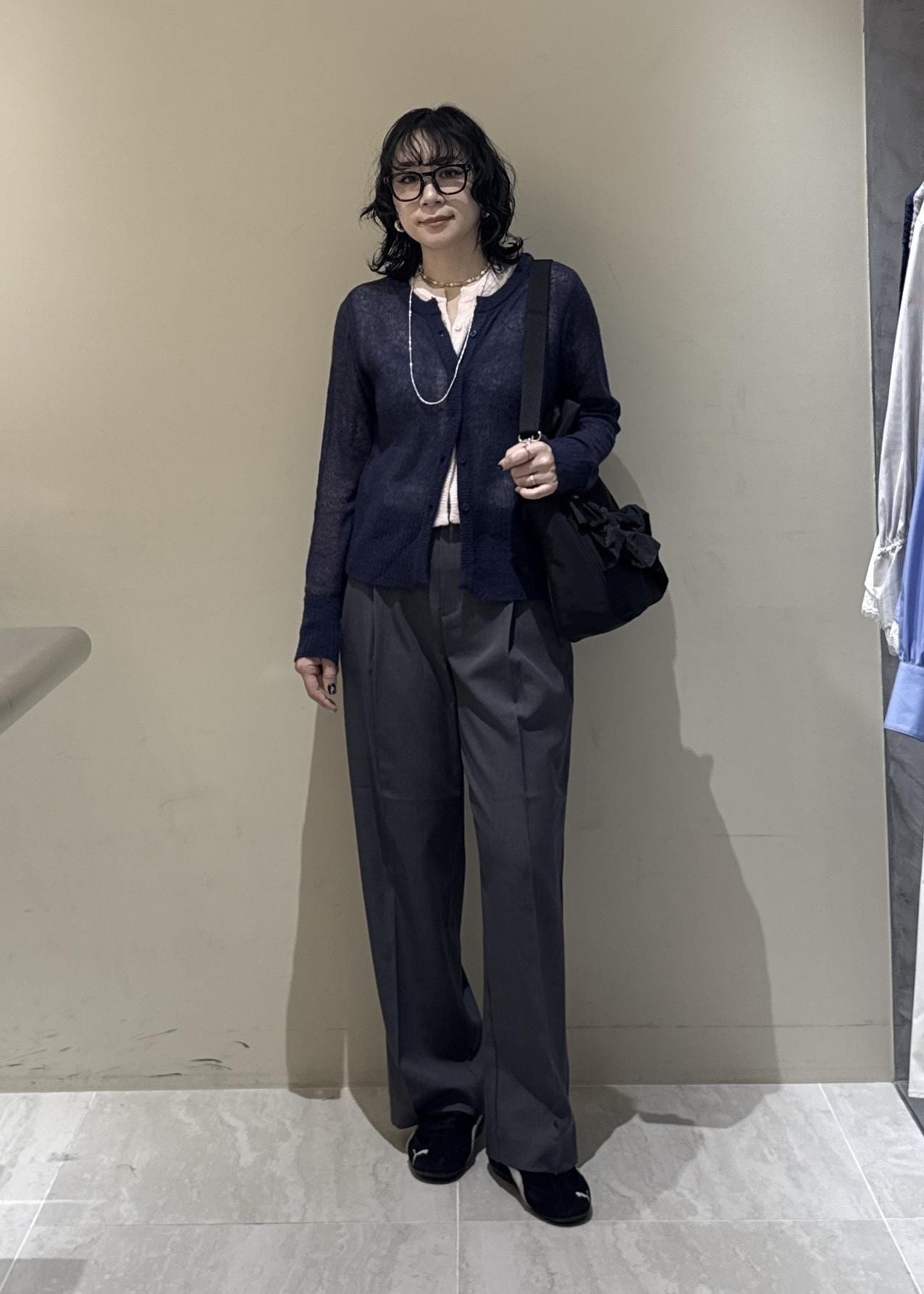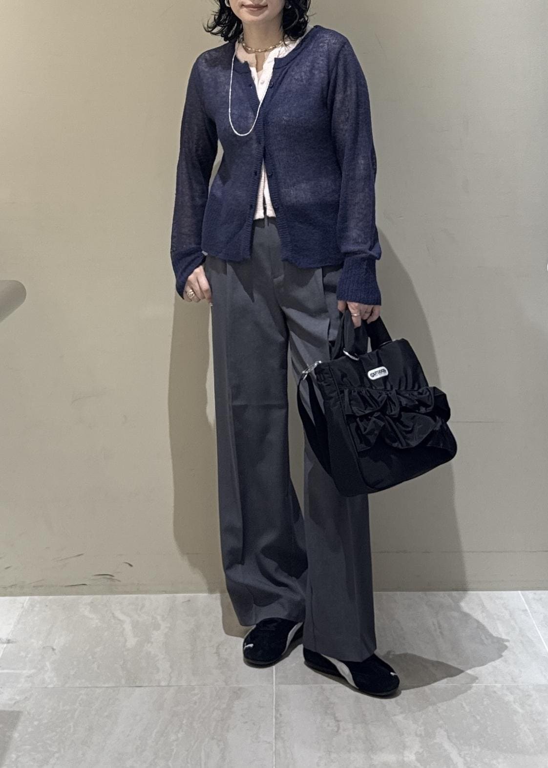 着用しているカーディガンは新宿ルミネエスト限定です(お問い合わせ品番→86030)