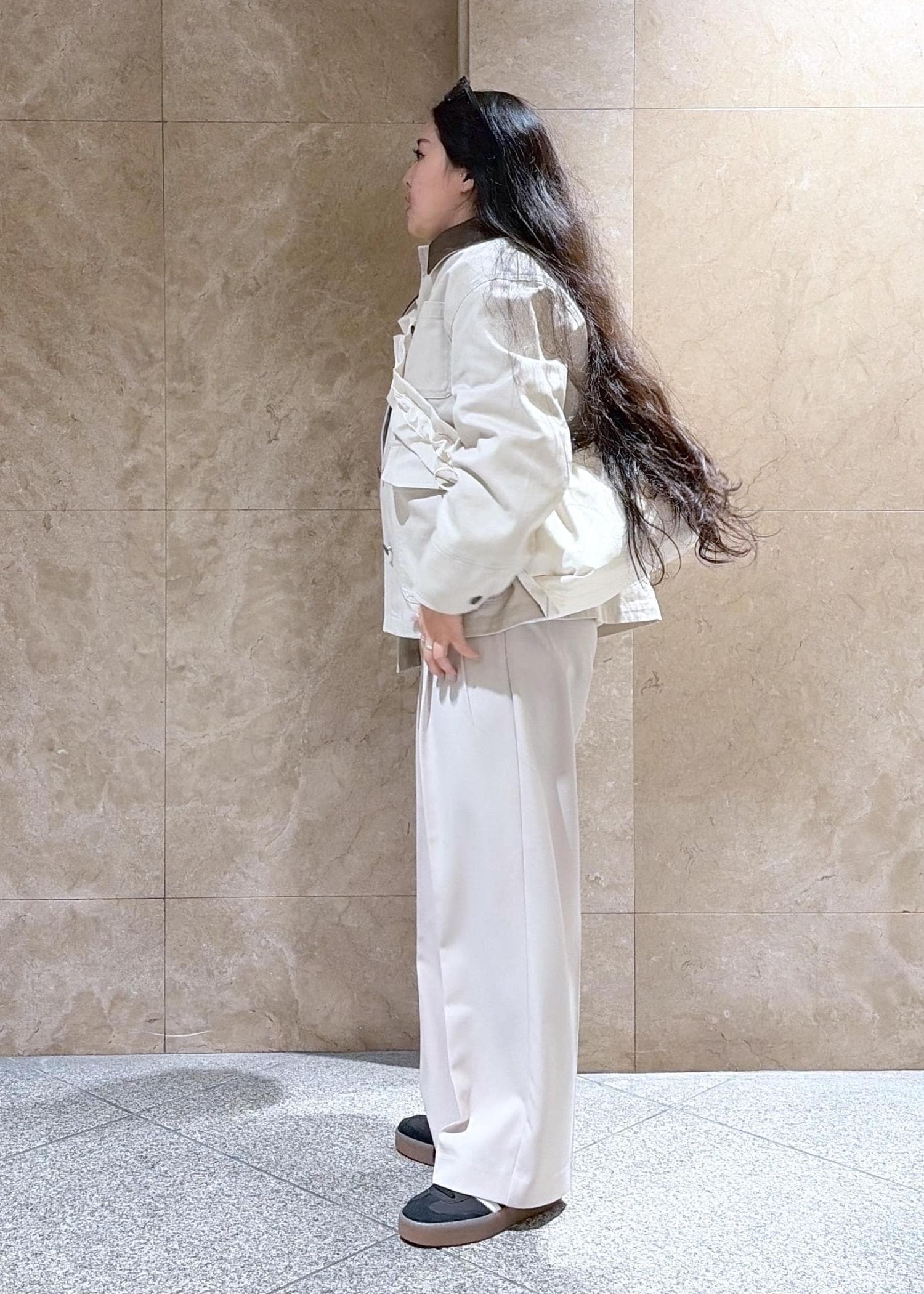 ウーリッシュより少し生地感が軽めのものになっていて着丈は1cm短い仕様です◎ -
