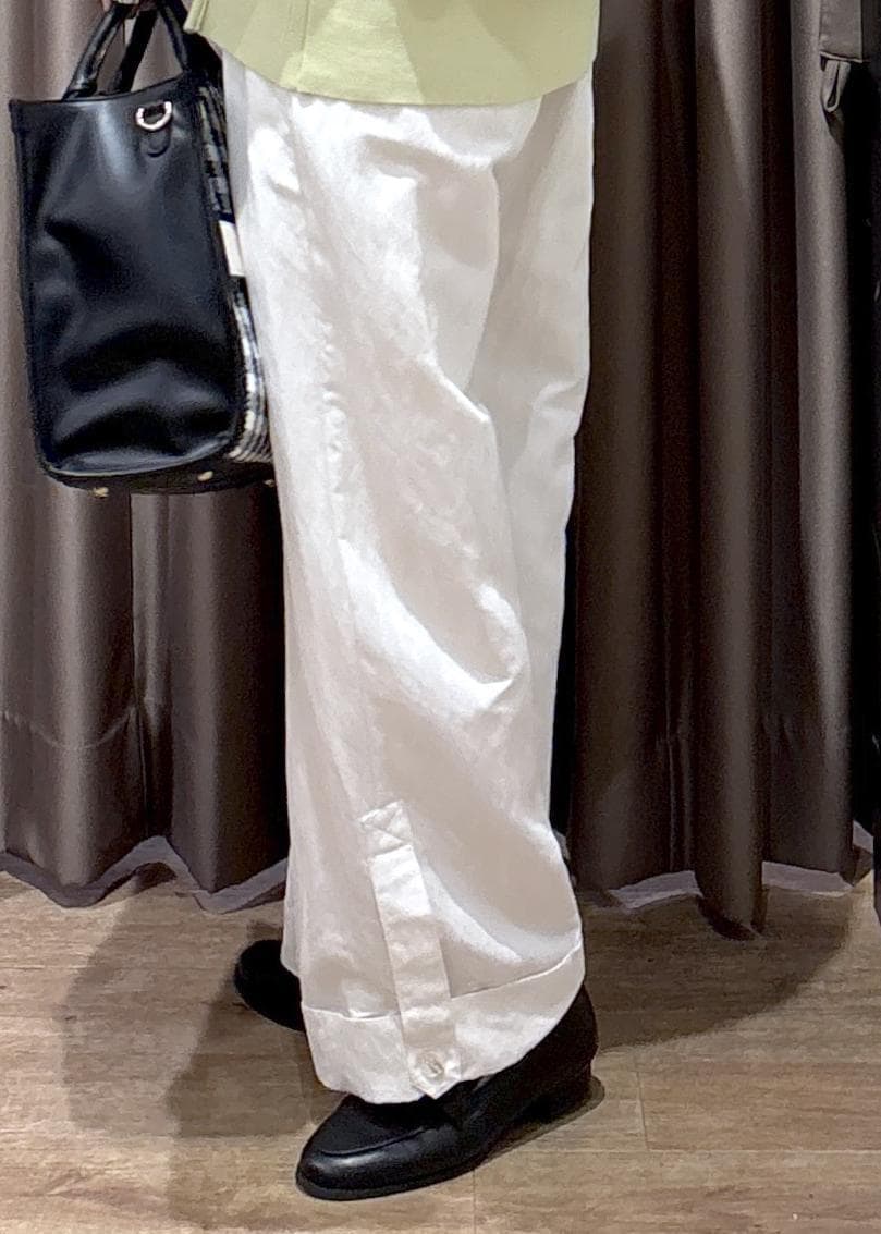 VISエアタンロールアップパンツ/イージーケア・防シワキナリ / M¥6,589レビュー着用の白は生地が薄く透け感があるので色の濃い下着に気をつけていただき、ペチコートがあると安心です!ワイドでゆったり軽く、ウエスト後ろがゴムなので履きやすいです!