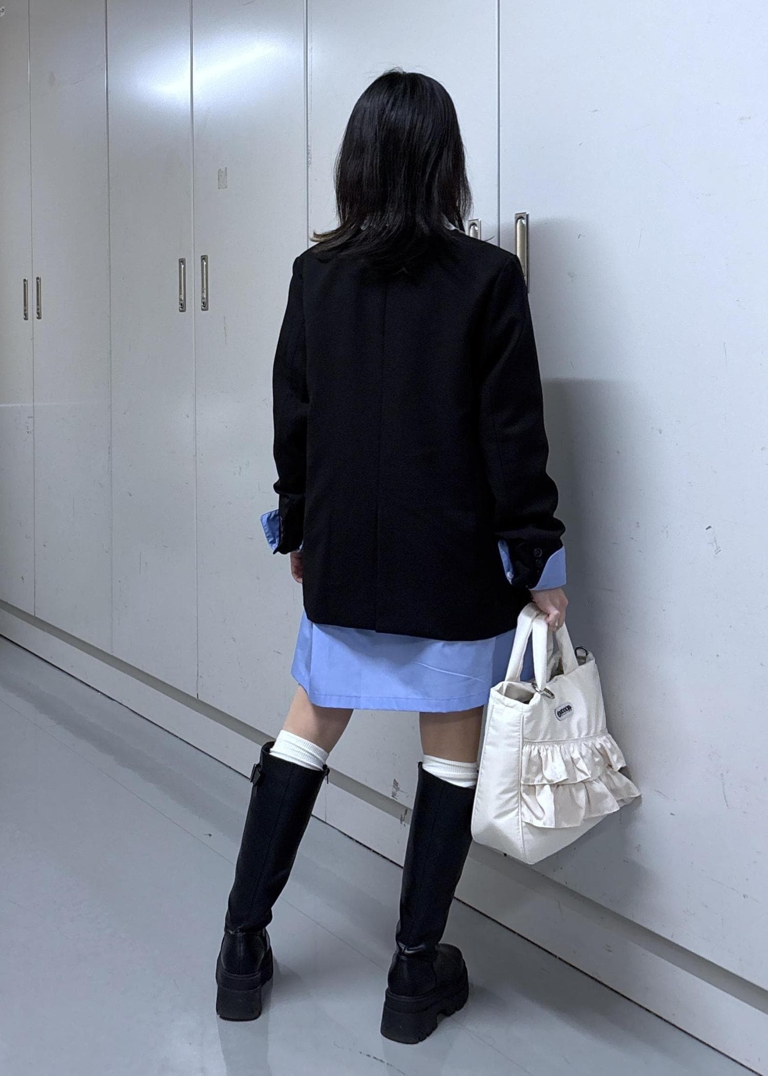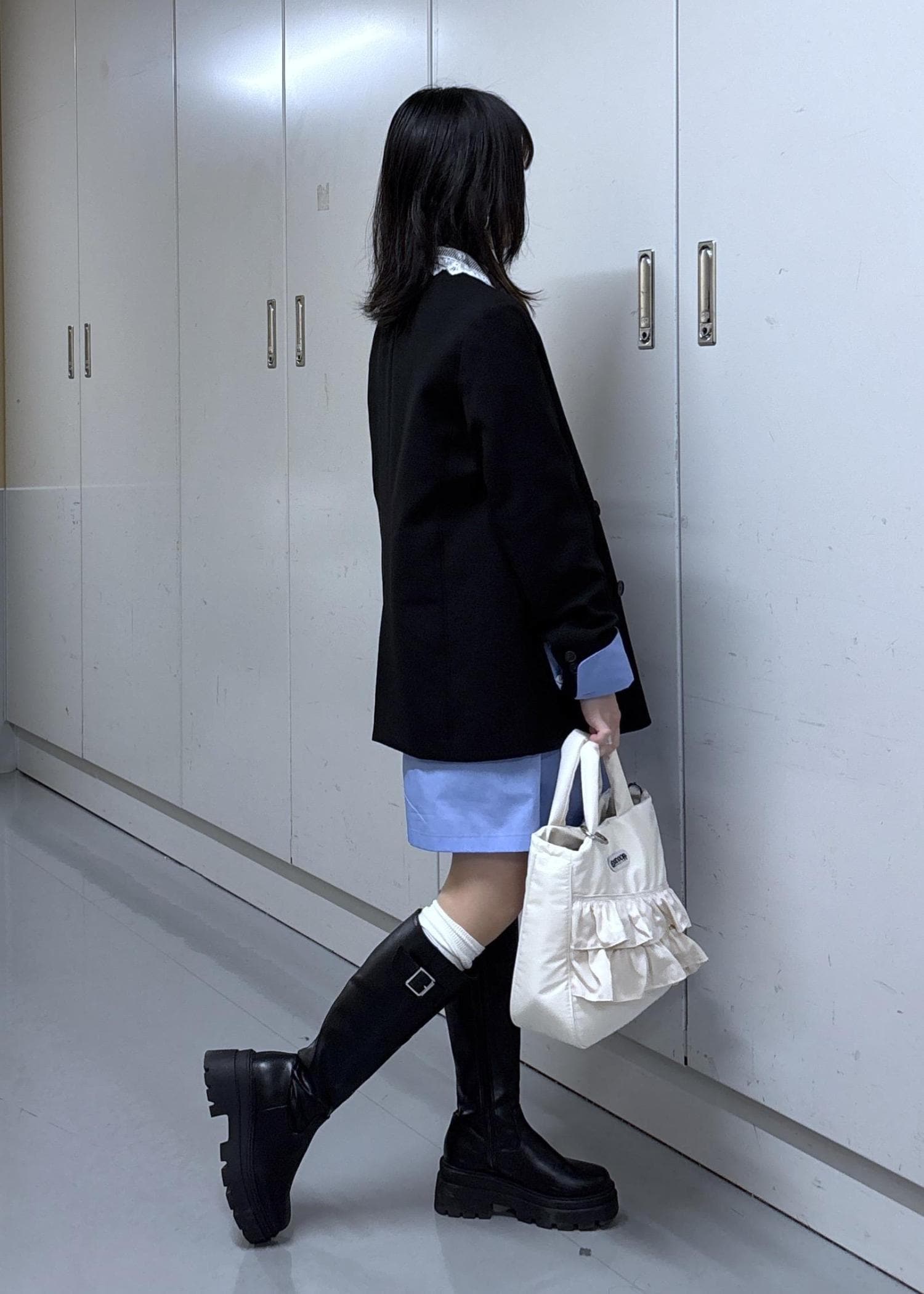 他にもニーハイソックスや、バッジでワンポイントを加えて工夫☺︎