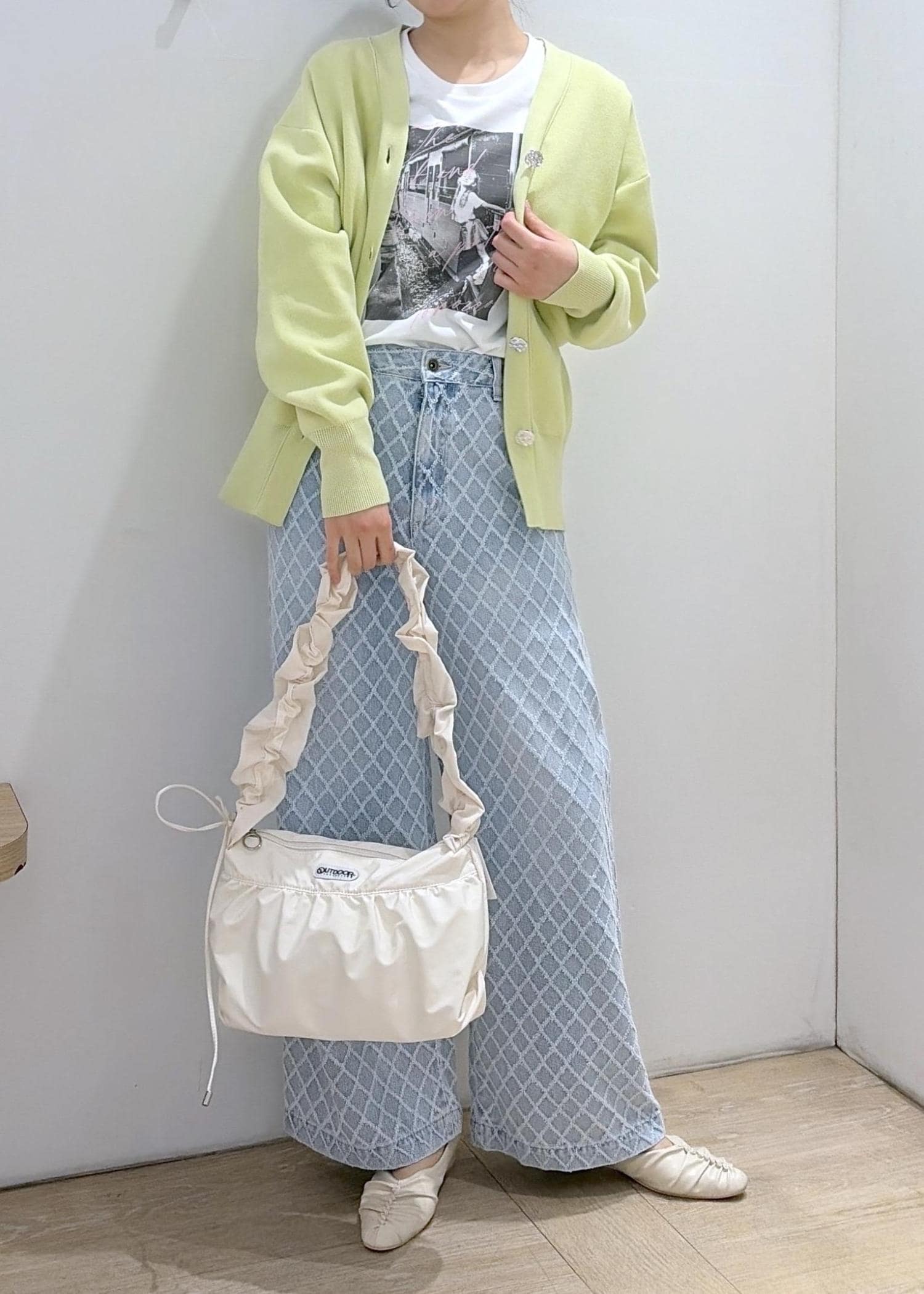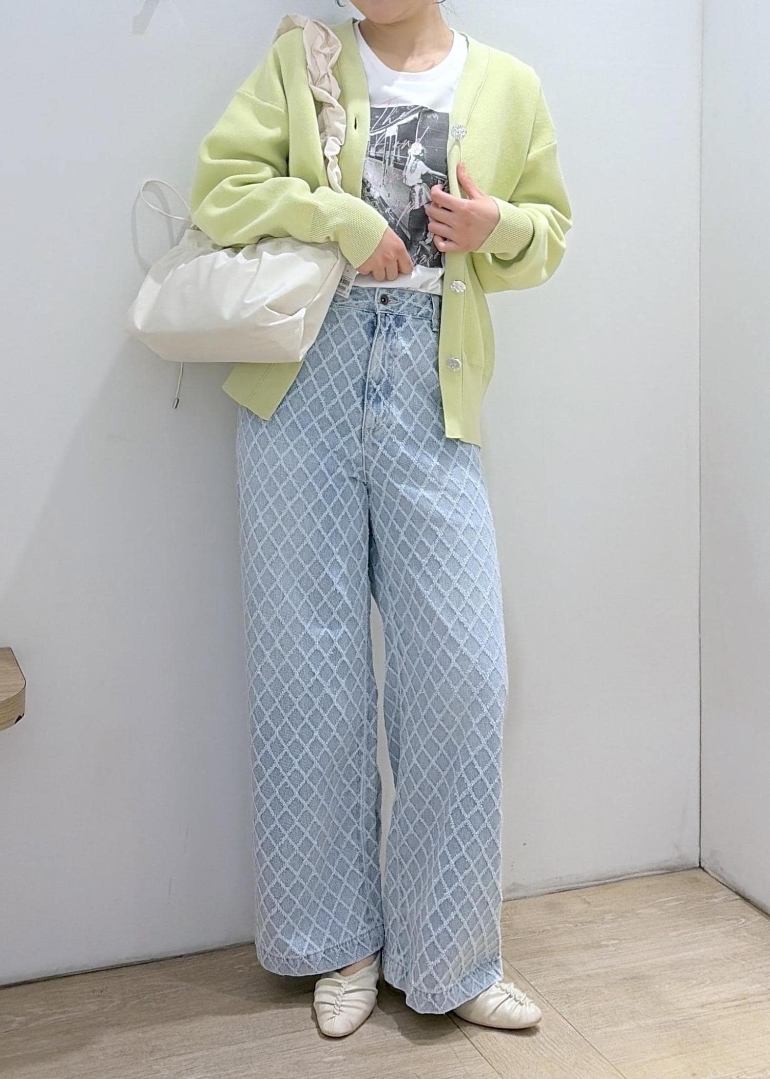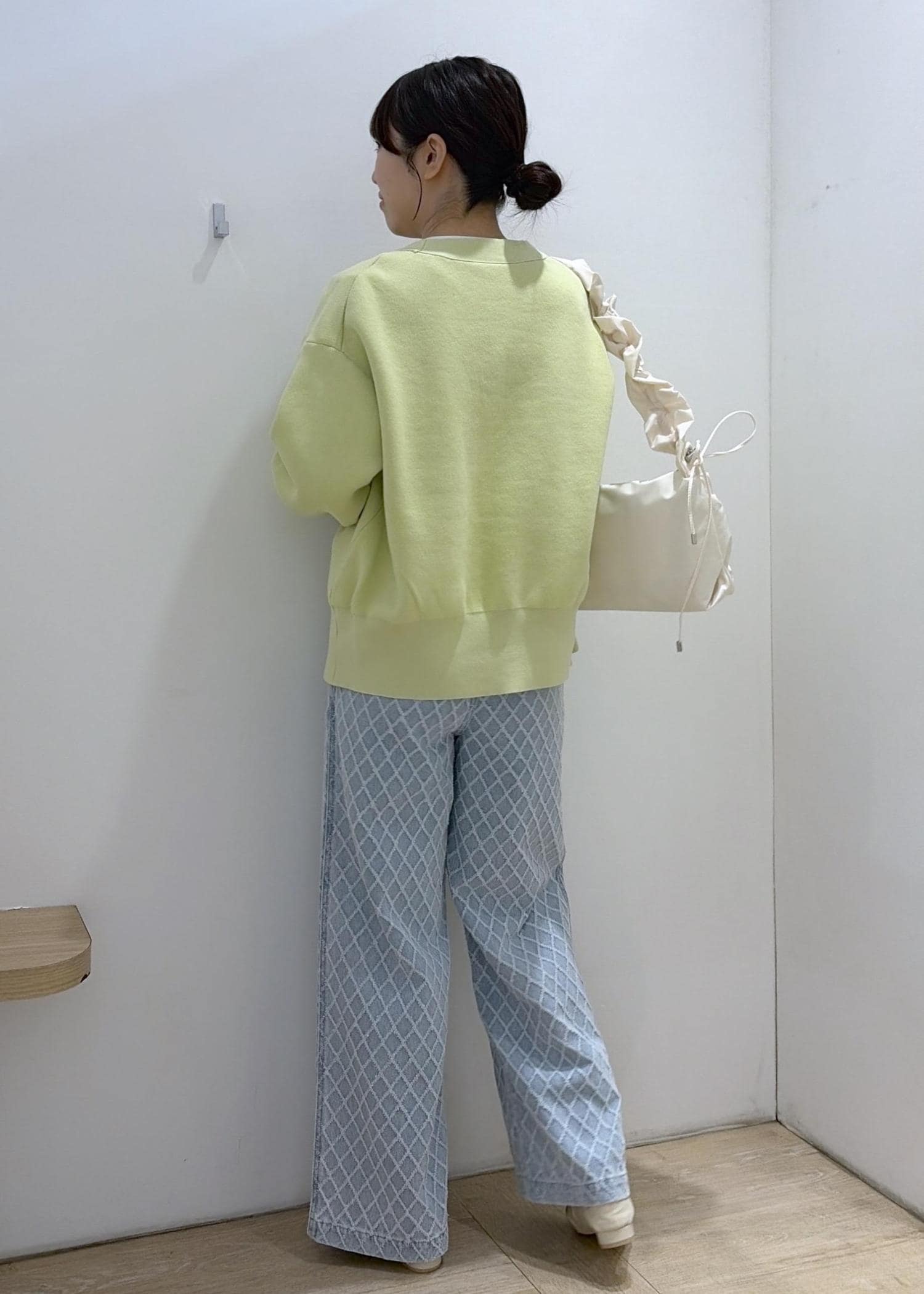 裾が広めのデニムになっていて大きめですがおしゃれなデザインになっています!