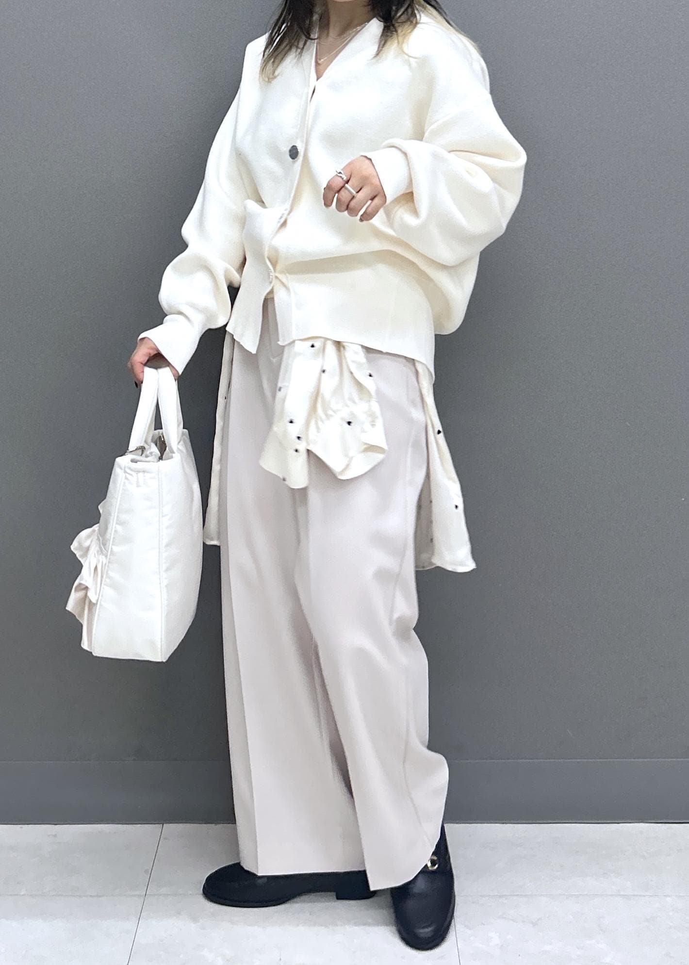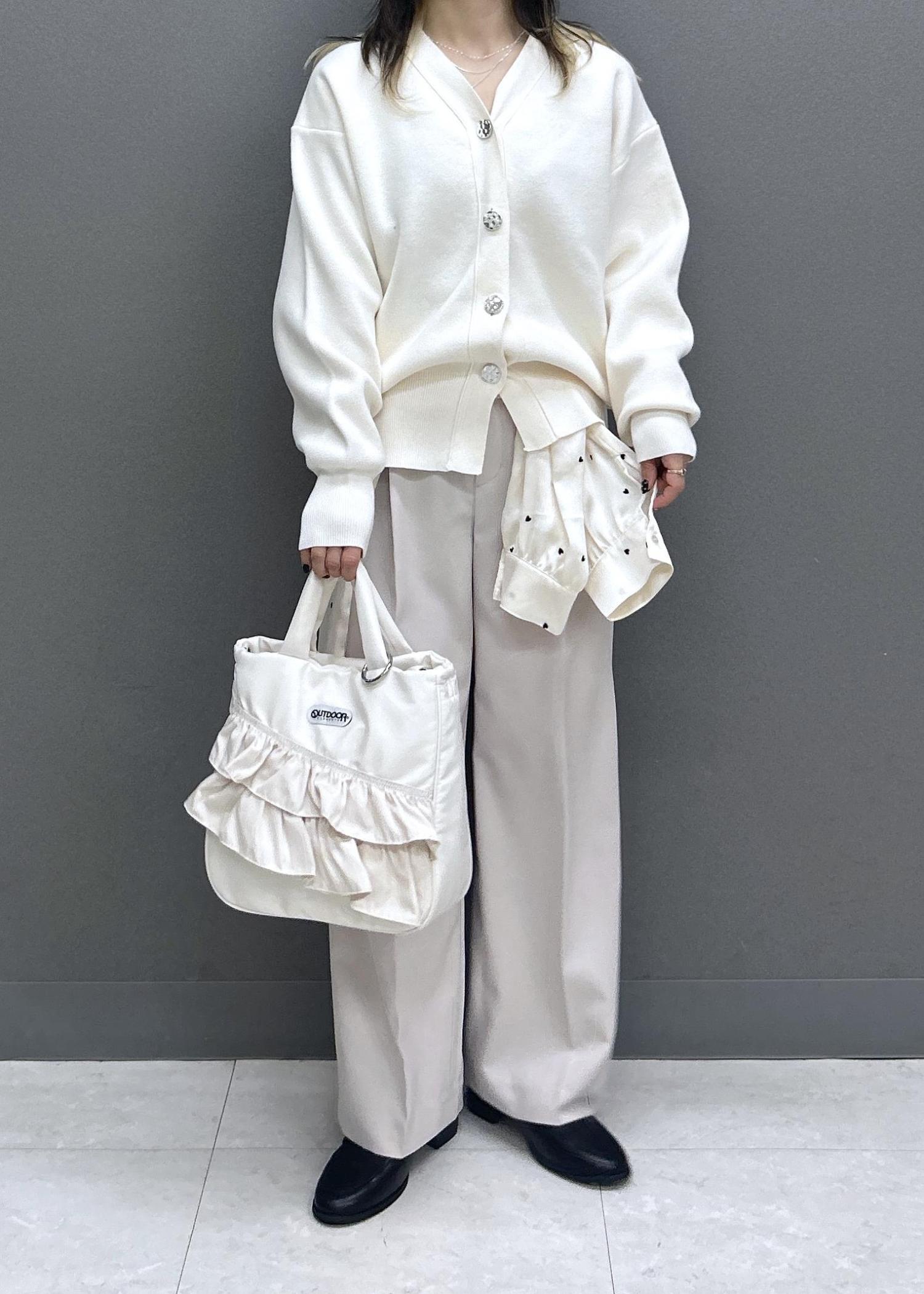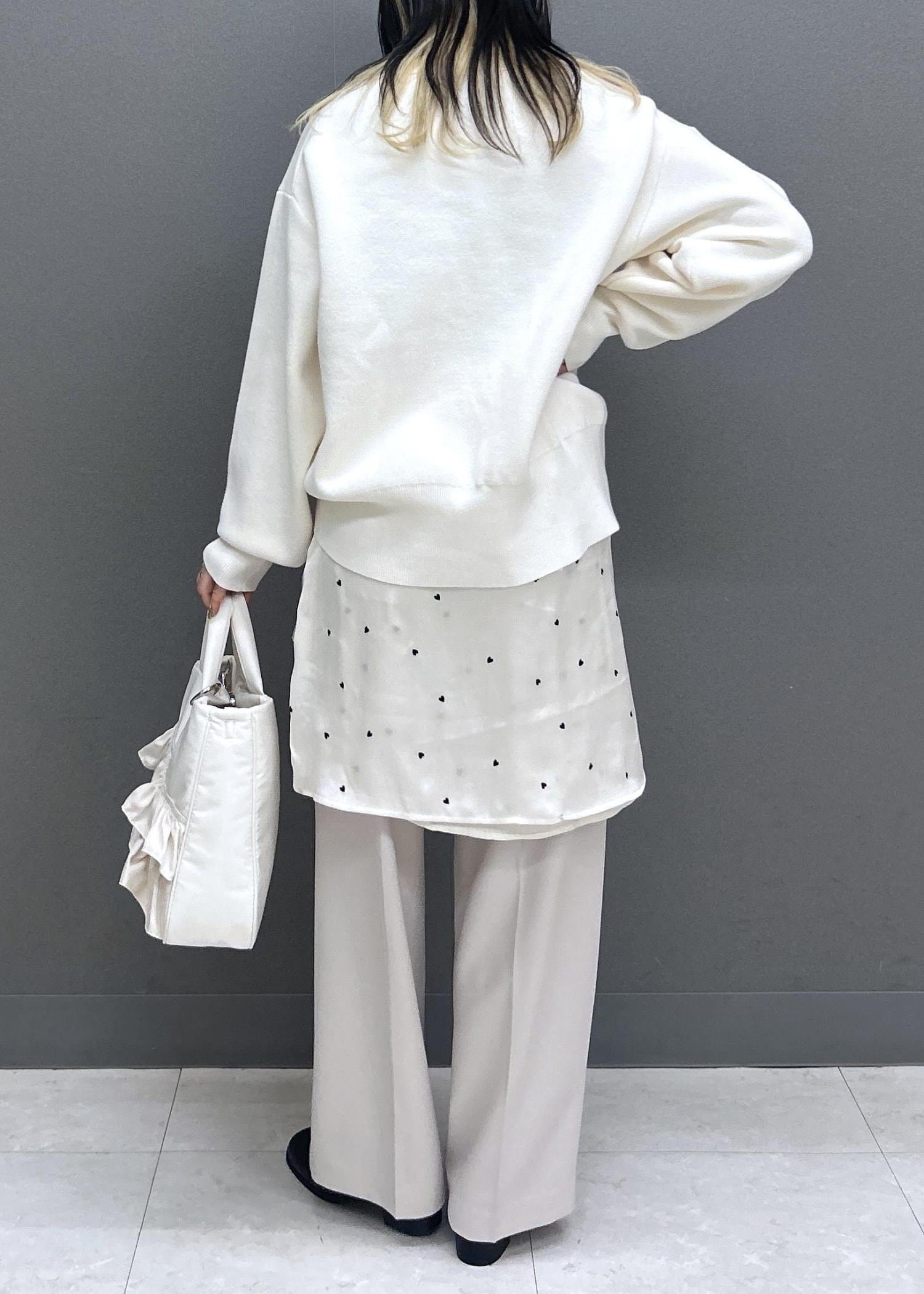 オフホワイトは透け感があるので、キャミソール合わせ必須です! -
