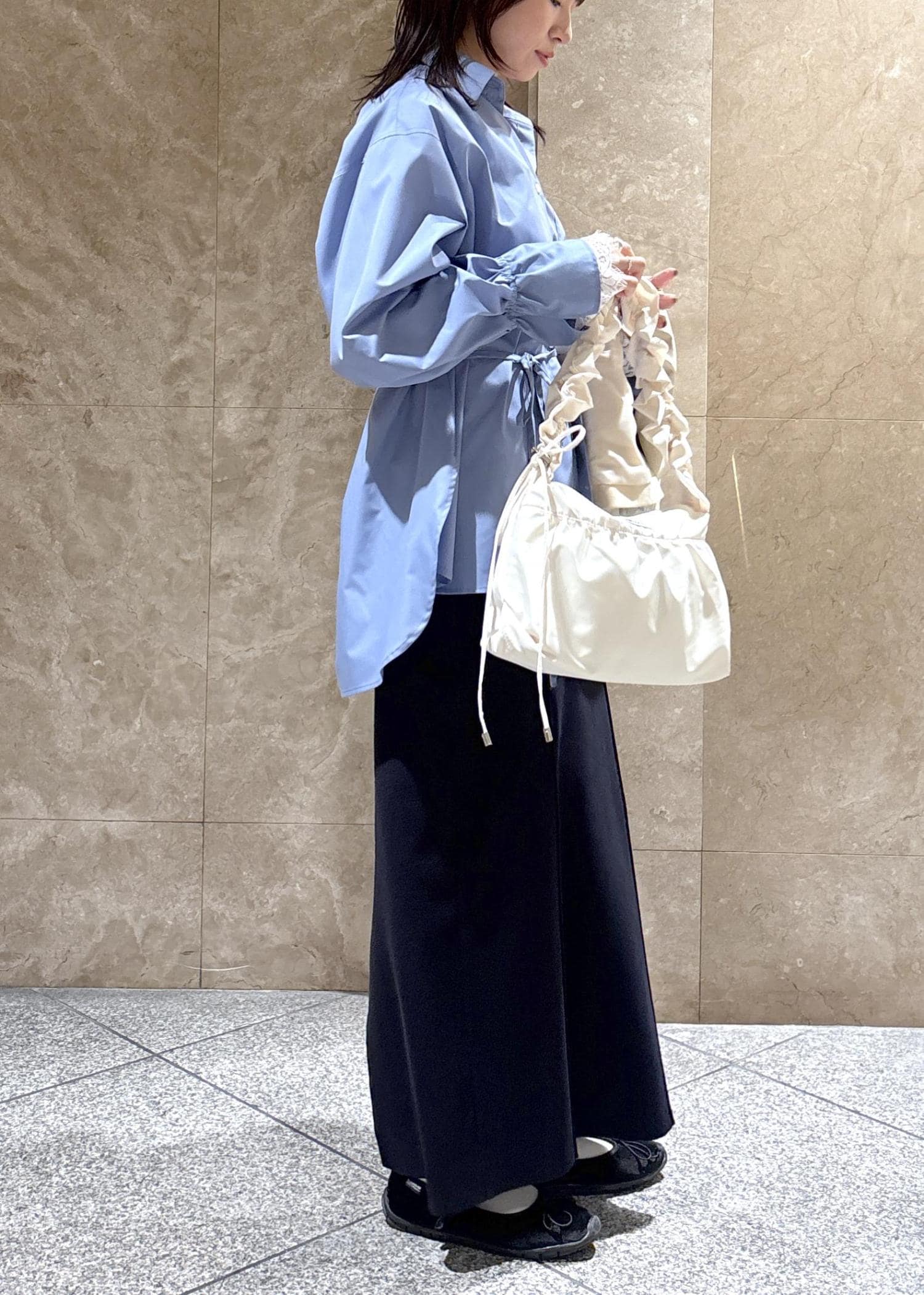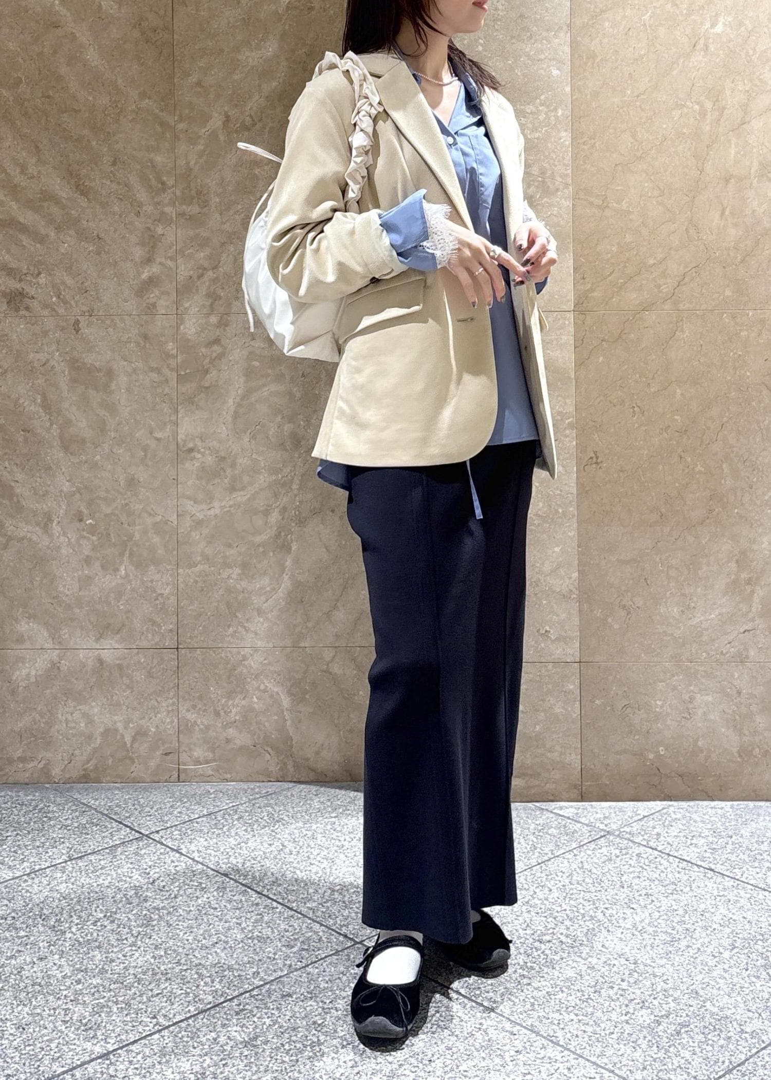 骨格ナチュラルだからか、インナーはハリのあるゆったりしたシャツよりかは、スッキリしたアイテムの方が相性◎でした。 -