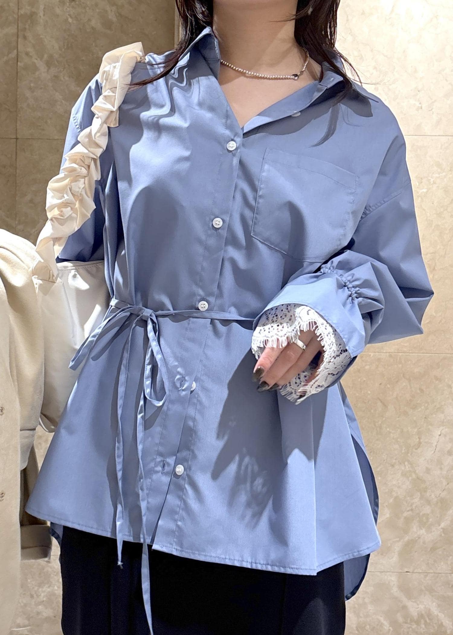 VISレーススリーブAラインシャツサックス / F¥5,929レビューゆったりしたサイズ感です。