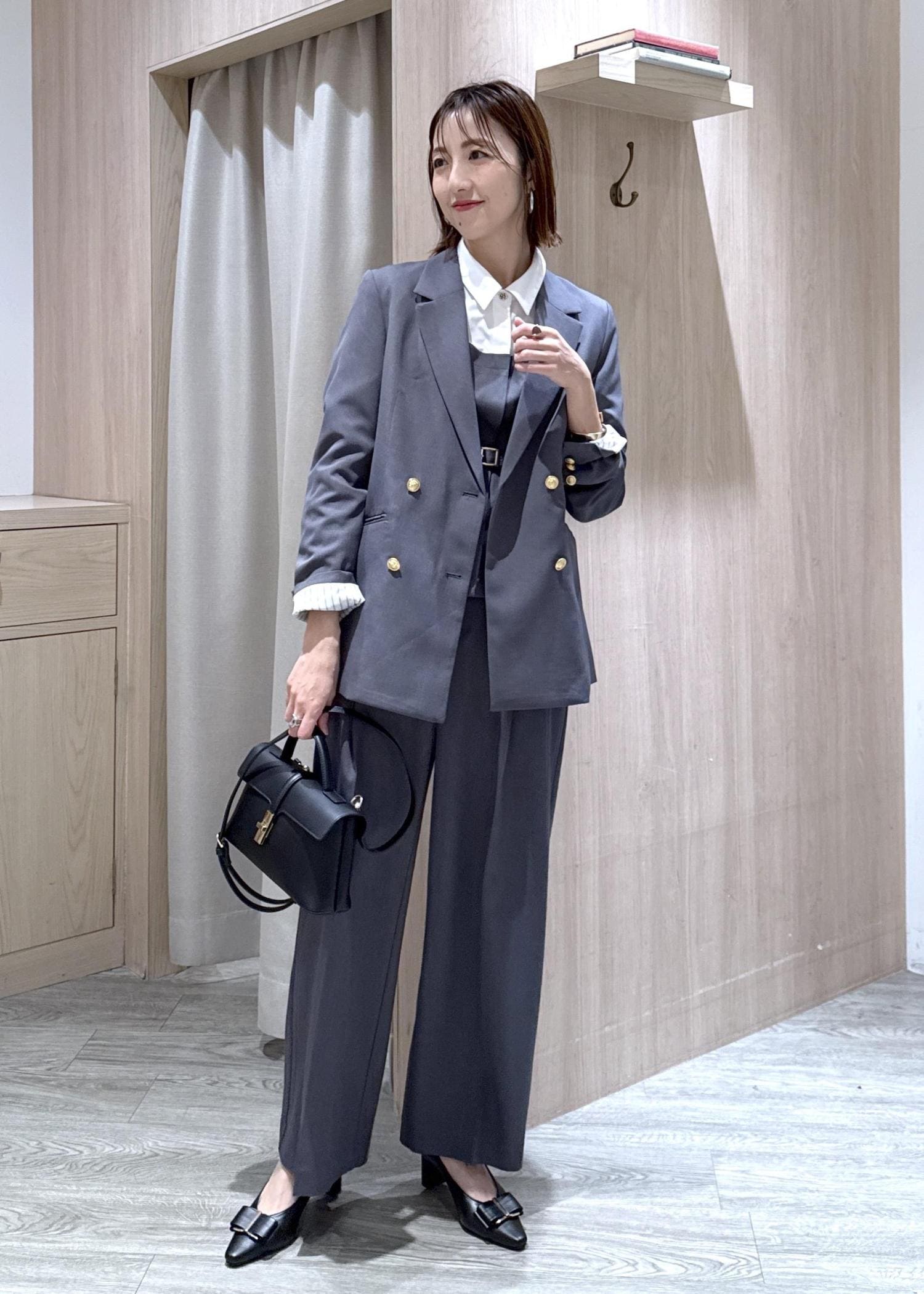インナーのシャツとパンツもセットアップで着られるので、羽織だけを手持ちのジャケットにチェンジして着回しもできますよ◎