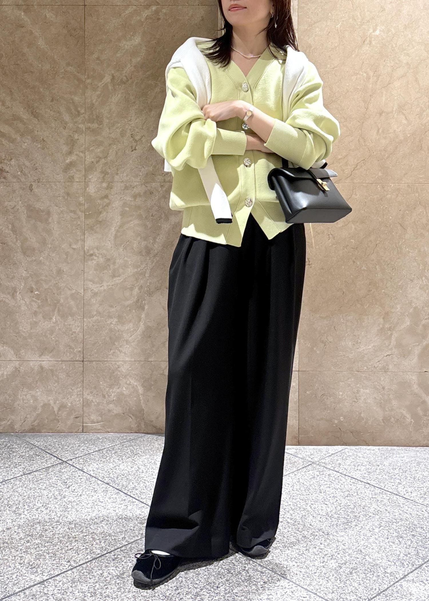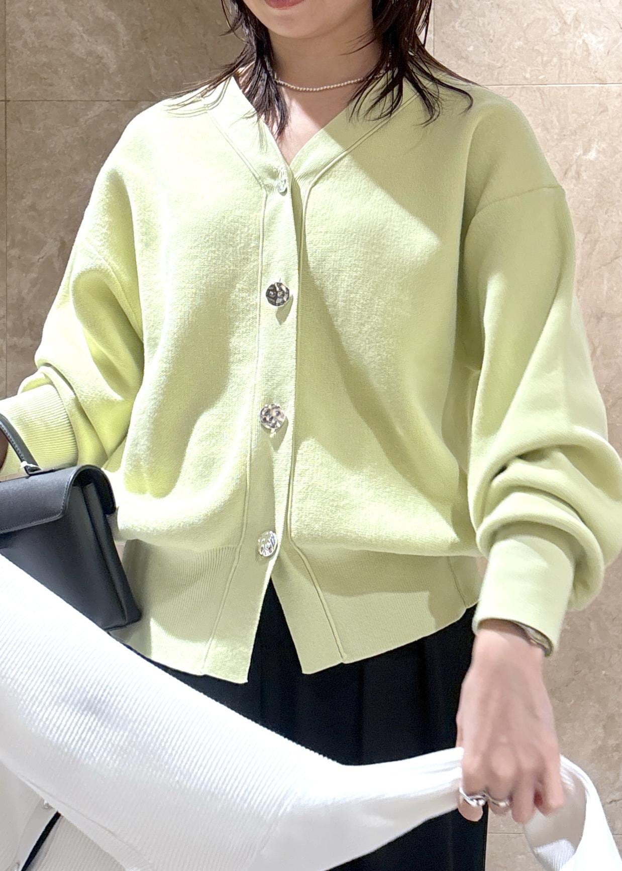 VIS釦アクセントコクーンカーディガンライトグリーン / F¥6,589レビューコットン混紡素材で肌触りの優しい春ニット。