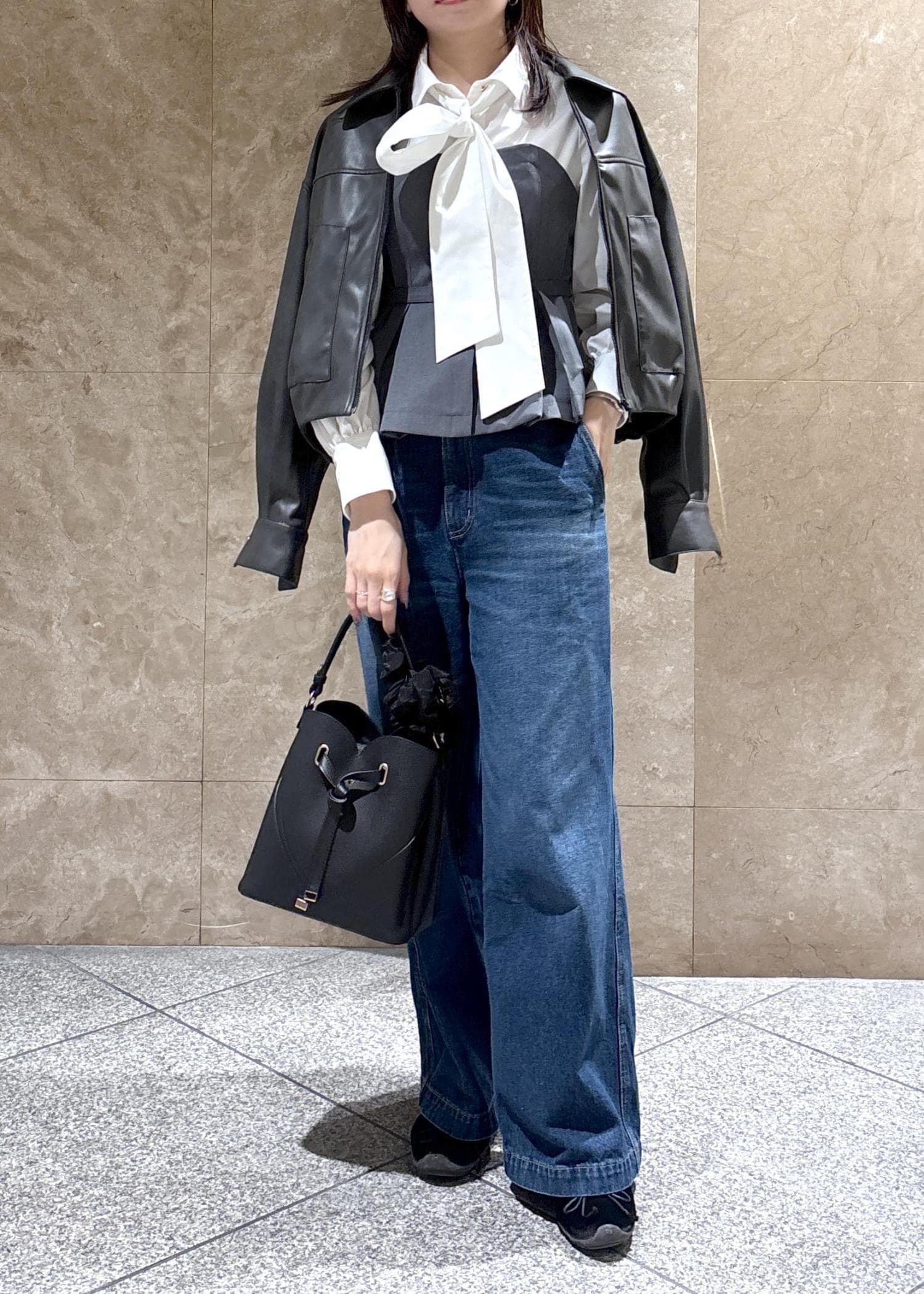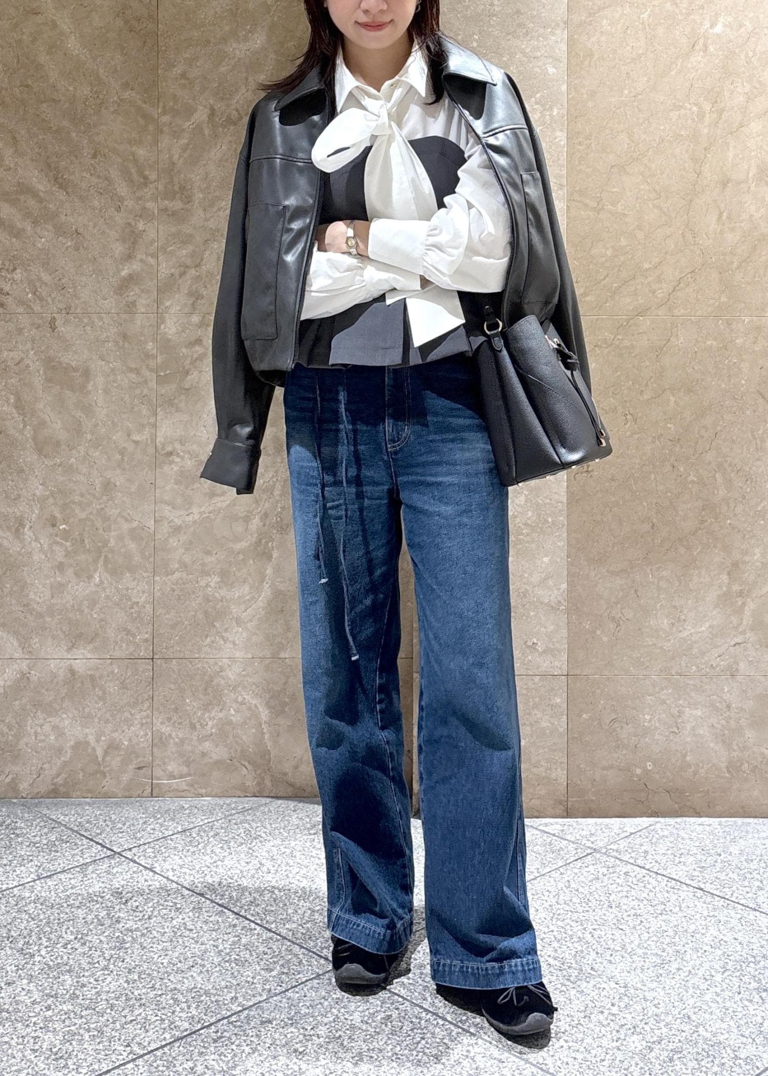 VISアウトポケット合皮ブルゾンブラック / F¥10,989レビューコンパクトなサイズ感ですが、脇周りや身幅にはある程度ゆとりがあり、厚みのあるニットの上からでも羽織りやすいです。
