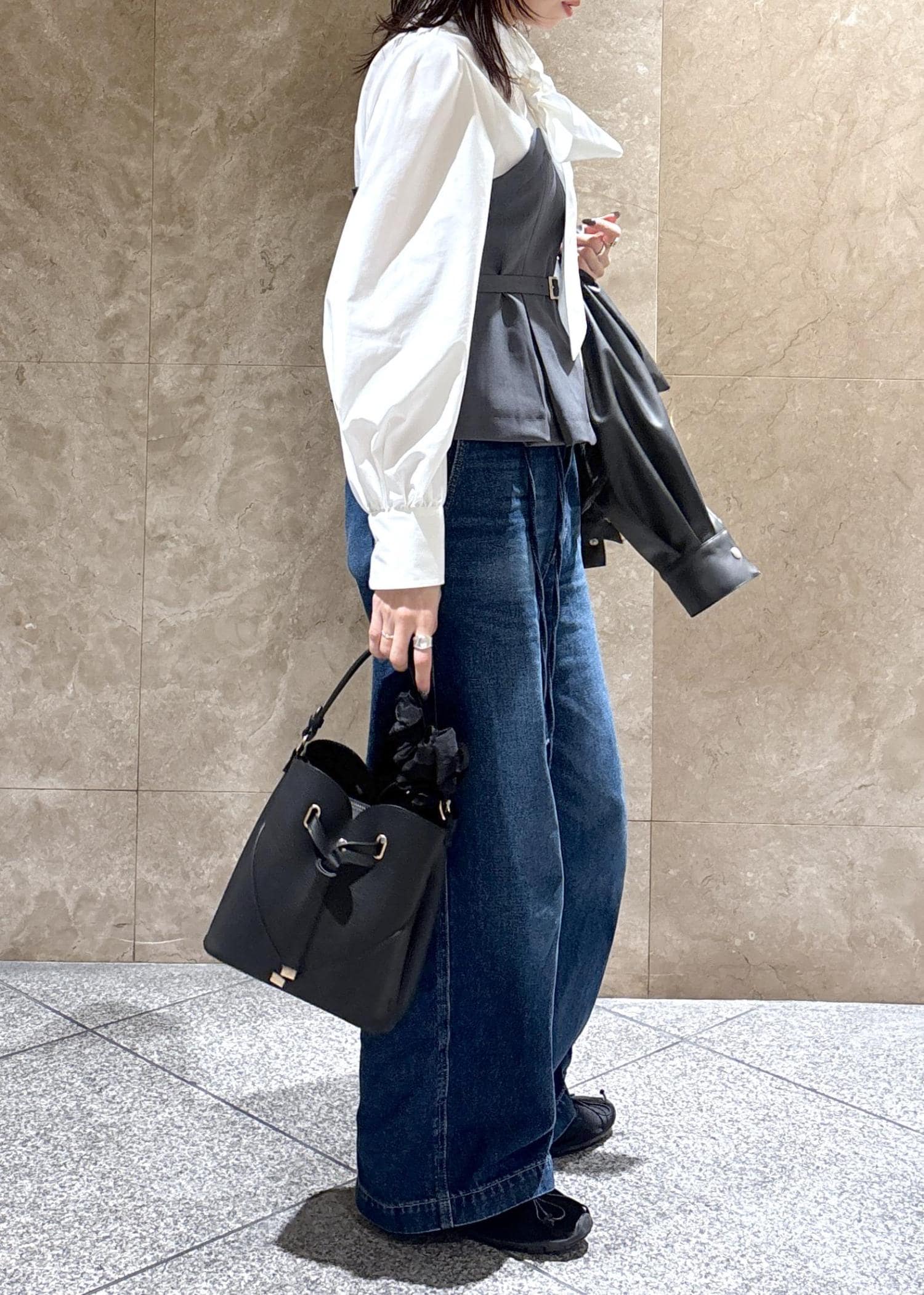 骨格ナチュラルなので、パフスリーブで肩が強調されるかな?と思いましたが、首元を開ければ問題なく着用できました。 -