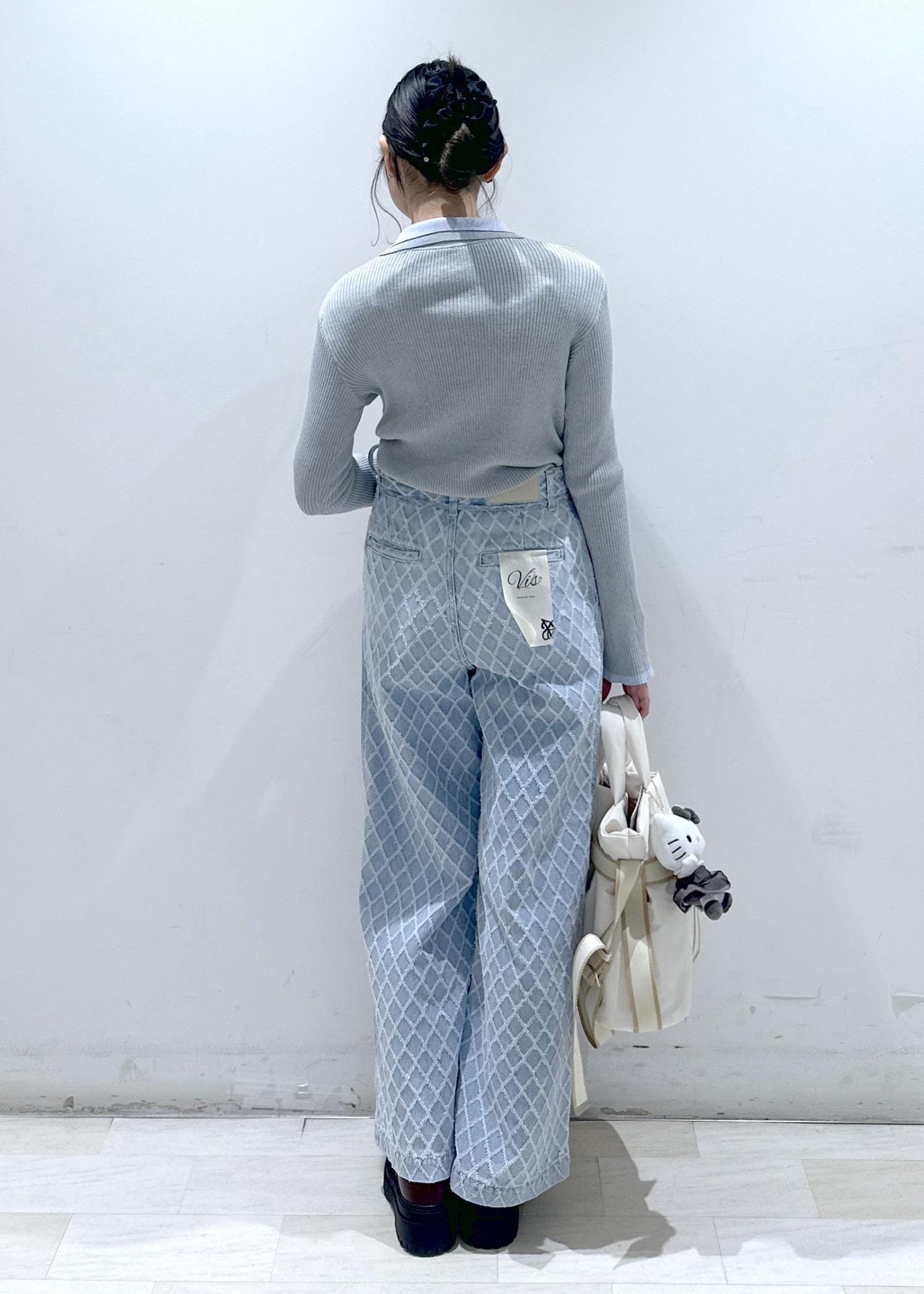 VISベルト付きワイドシルエットデニムパンツブルー系 / M¥8,899レビュー使いまわしの効くワイドシルエットのデニムにジャガード生地を使用し華やかでポイントになるデザイン。