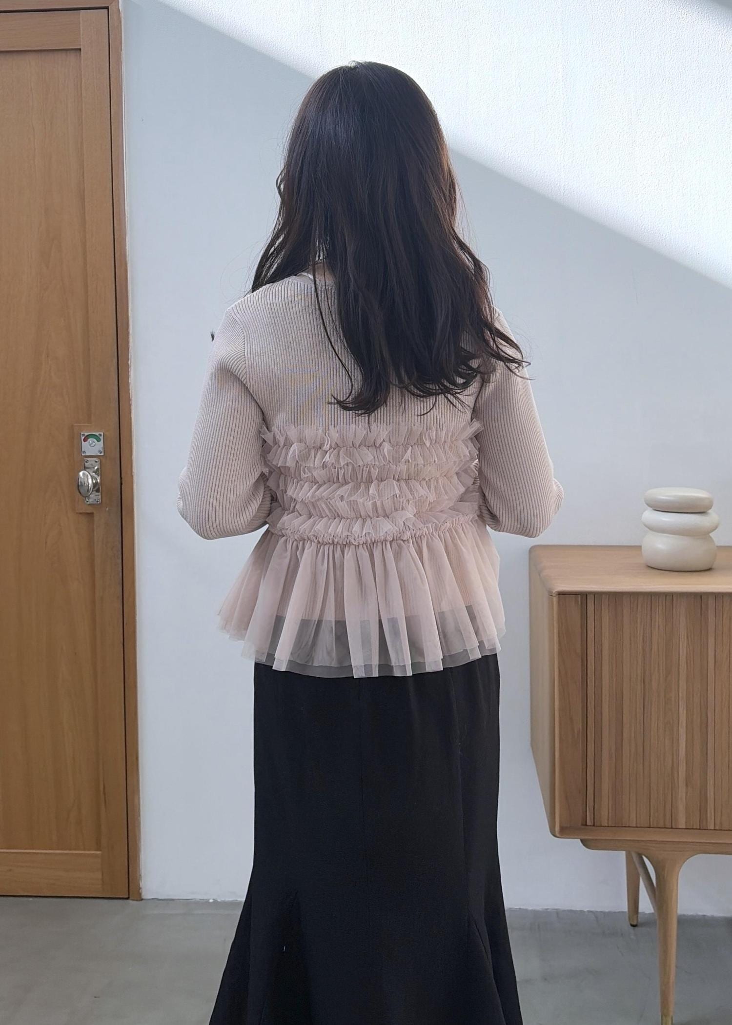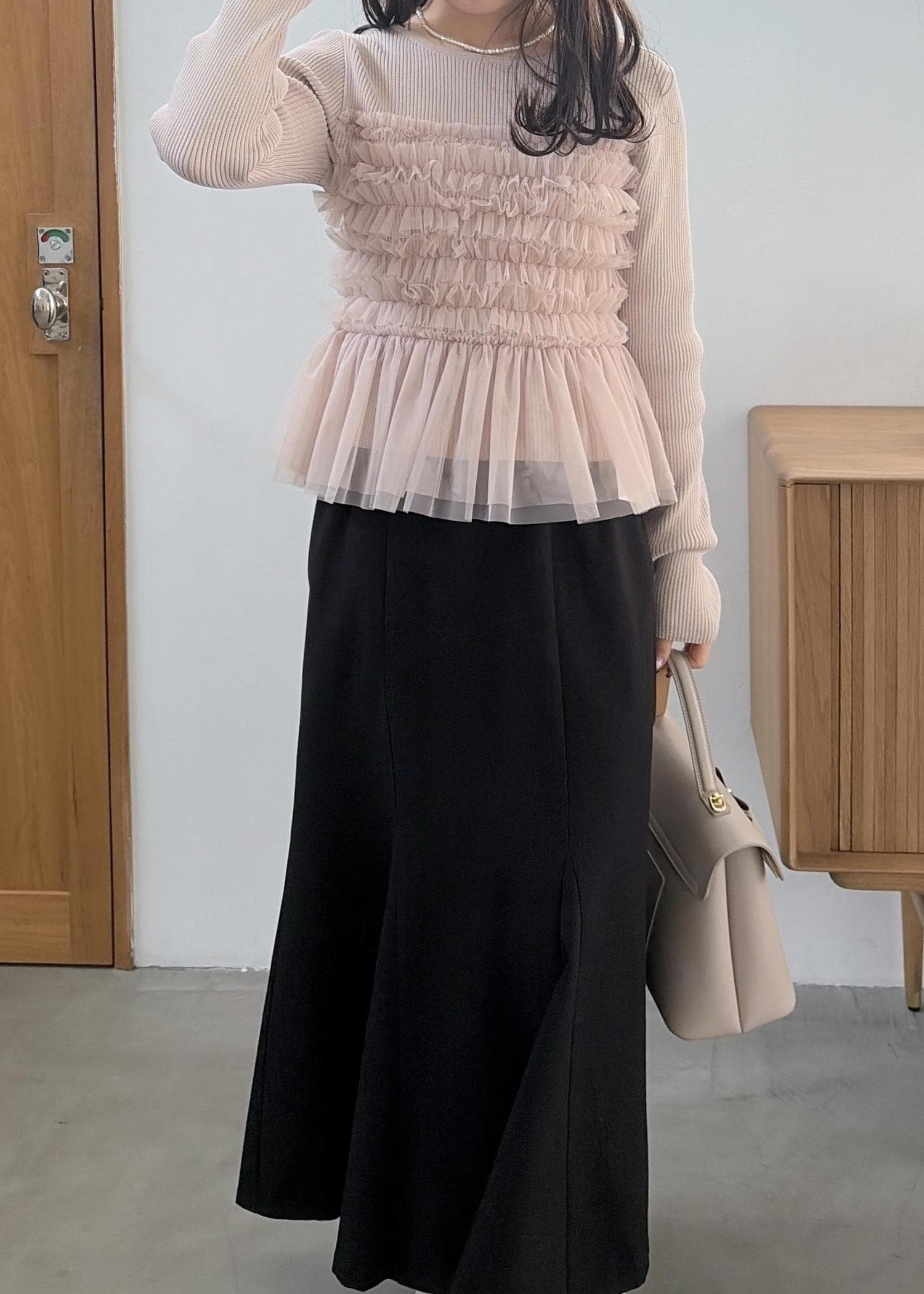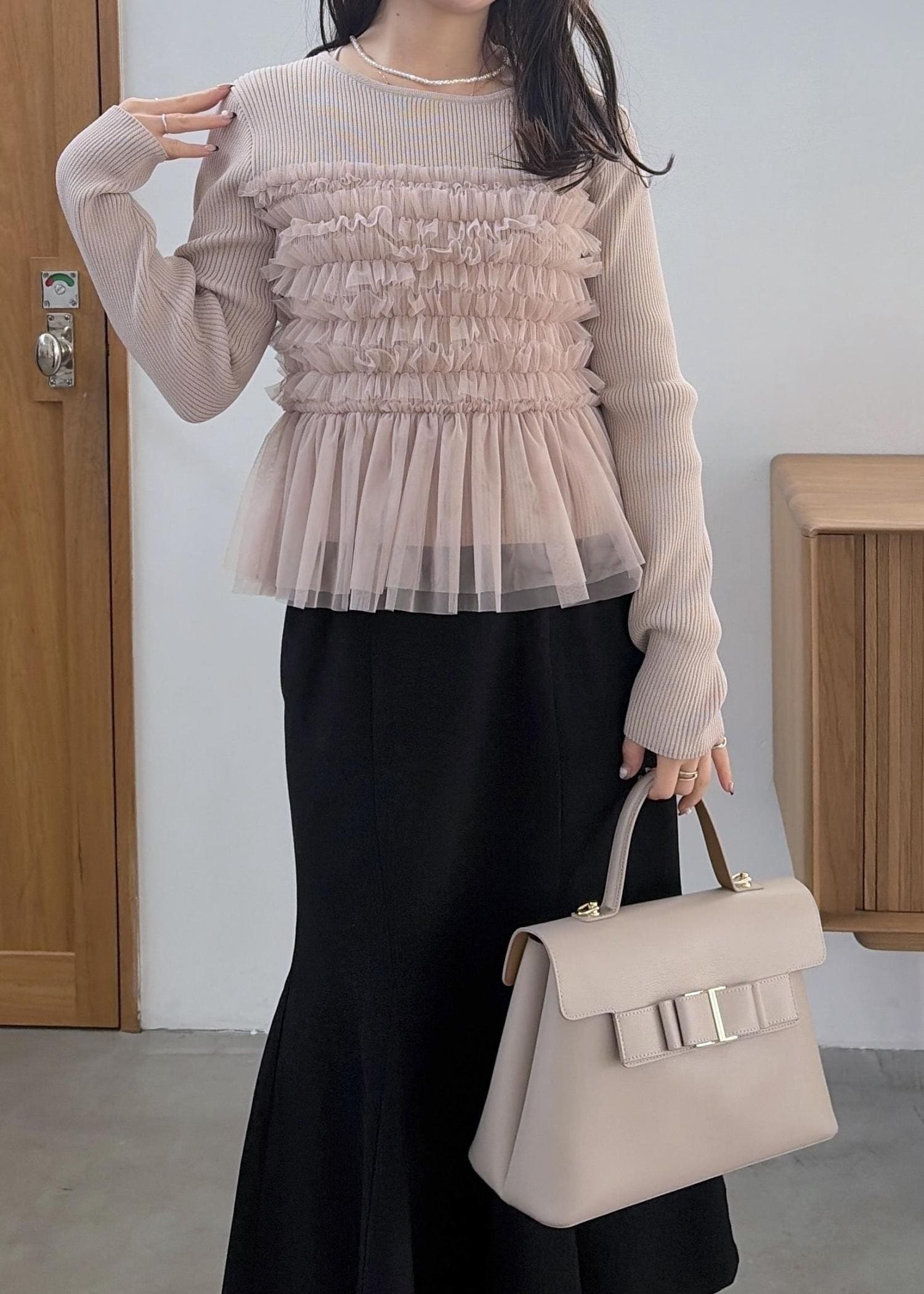 VISチュールフリルドッキングニット/イージーケアベージュ / F¥6,589レビューチュールがドッキングされたトップス!