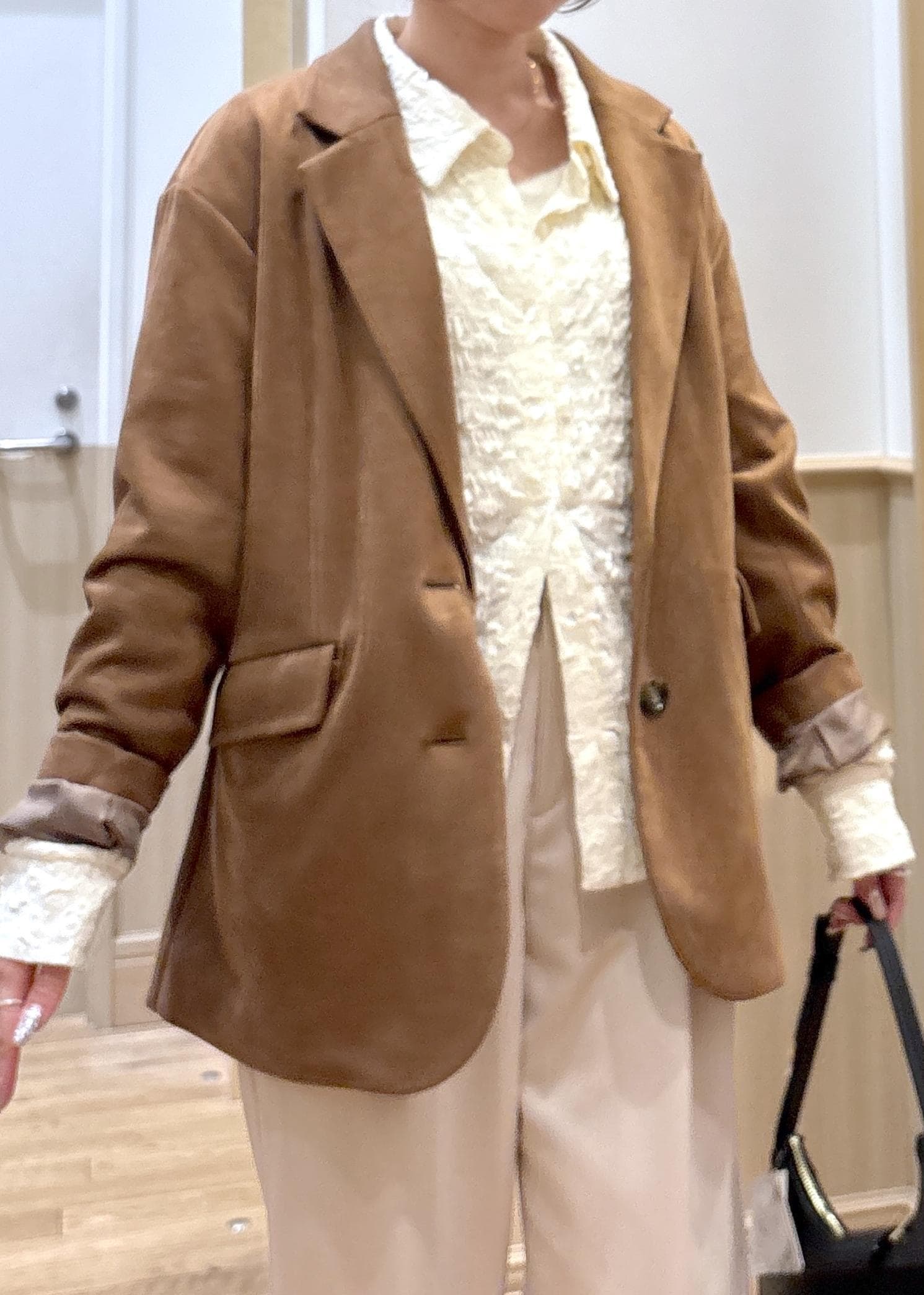 VISオーバースエードテーラードジャケットブラウン / F¥8,899レビュースエード素材が可愛いジャケットです。