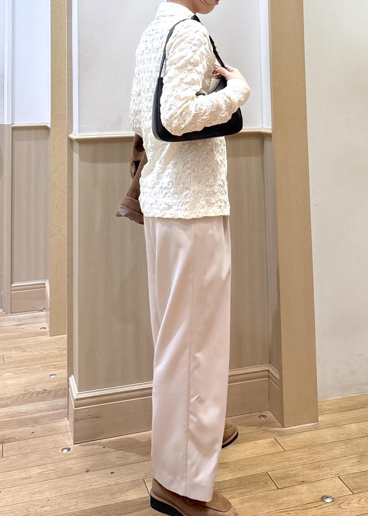 長さもかかとにつかないくらいなので、綺麗めなワイドパンツとしての着用にぴったりです。 -