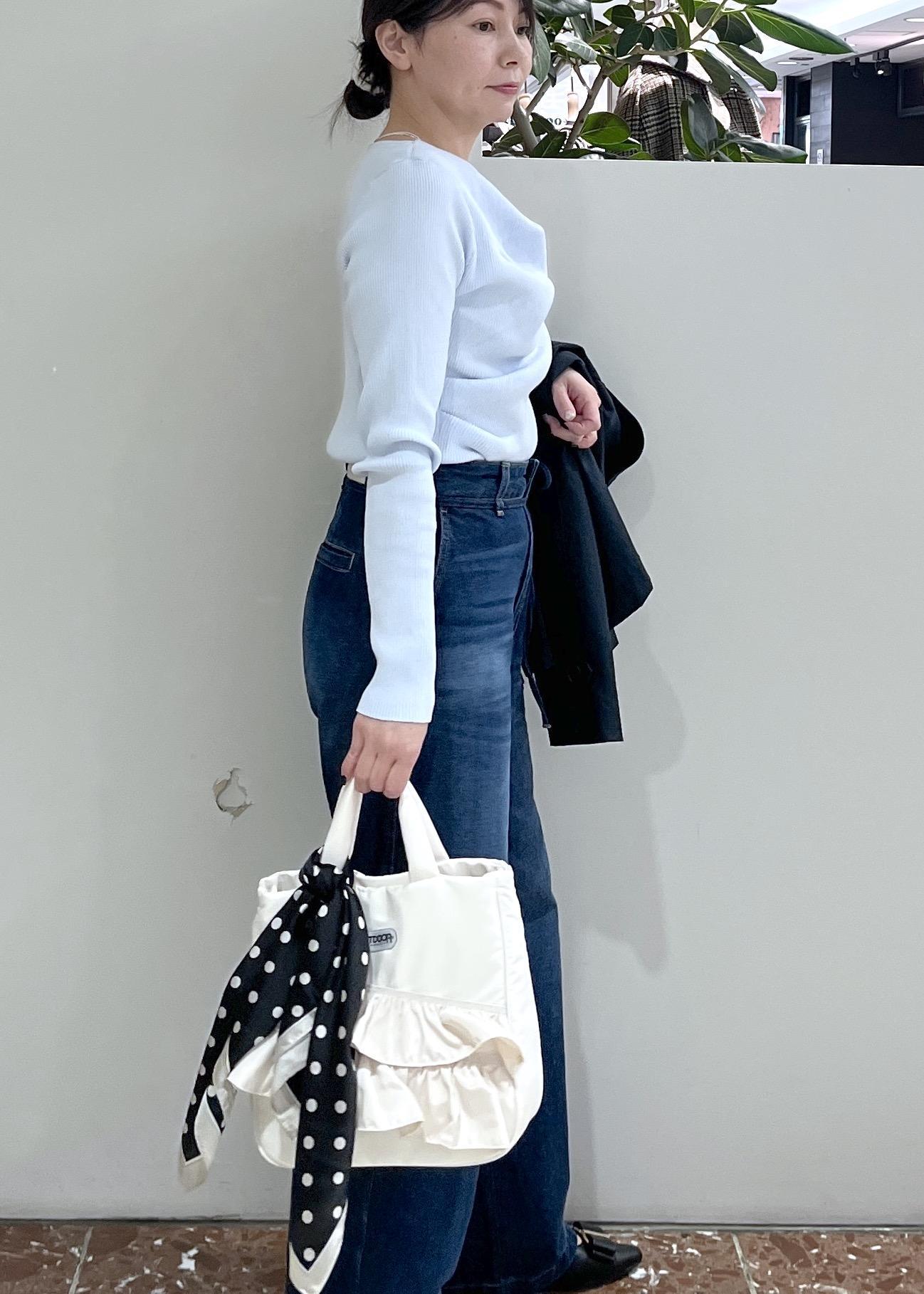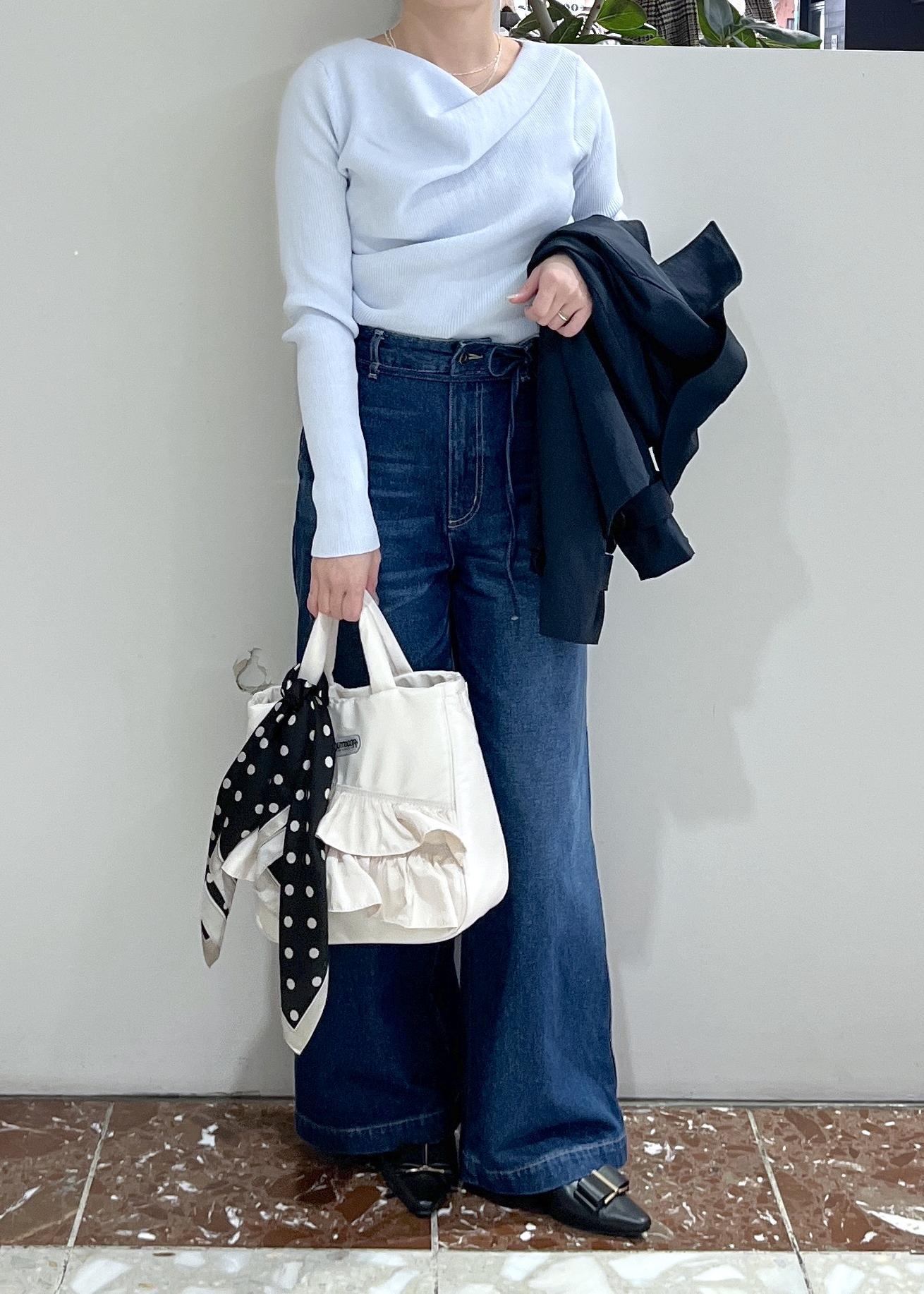 NEW!VISドレープオフショルダーリブニット/イージーケアサックス / F¥4,389レビューシンプルキレイに着こなしが出来るトップスです。