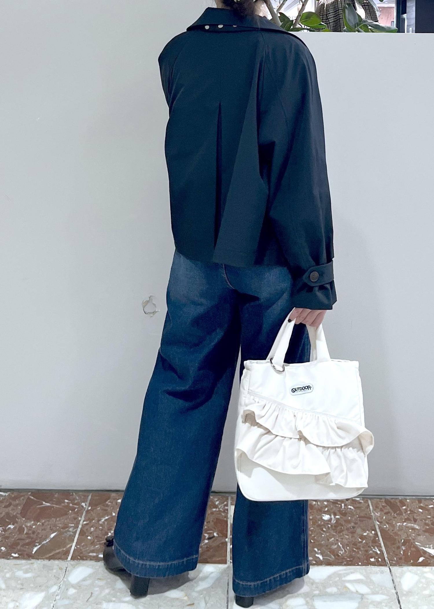予約VIS【OUTDOOR PRODUCTS】VIS別注2WAYフリルトートバッグキナリ / F¥8,580レビューアウトドアコラボのバックです。コンパクトなサイズながらも水筒も入る大きさで軽い生地なのでデイリー使いしやすいです。フリルデザインがフェミニンな雰囲気にピッタリです。ハンドル部分にチャームがつけられてるリングがついてるのも嬉しいです。