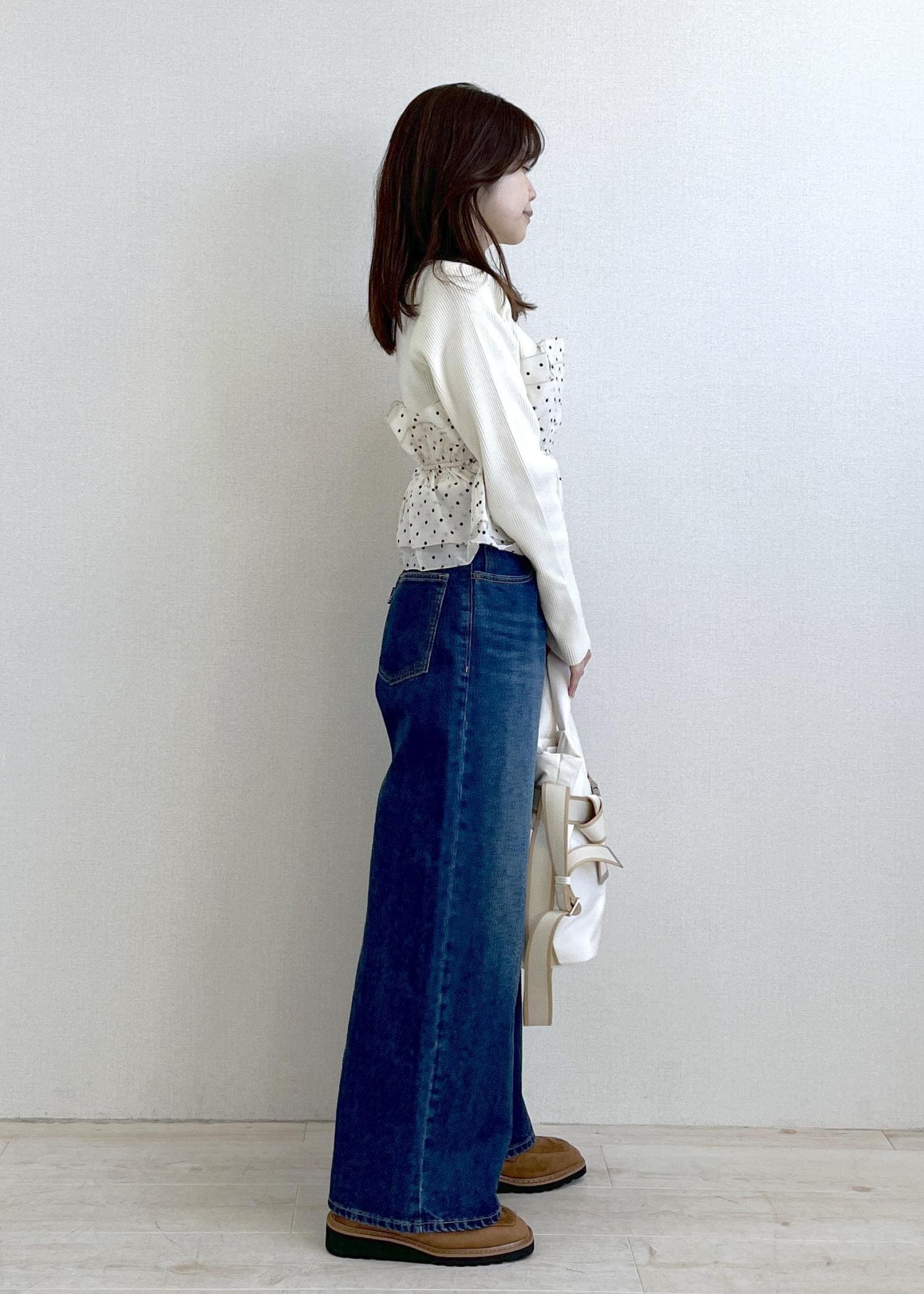 ウエストが締まったデザインなので、骨格ウェーブさんはワイドパンツも相性◯です。 -