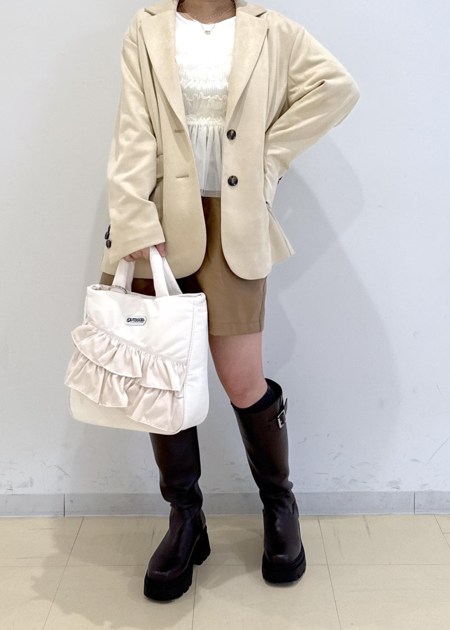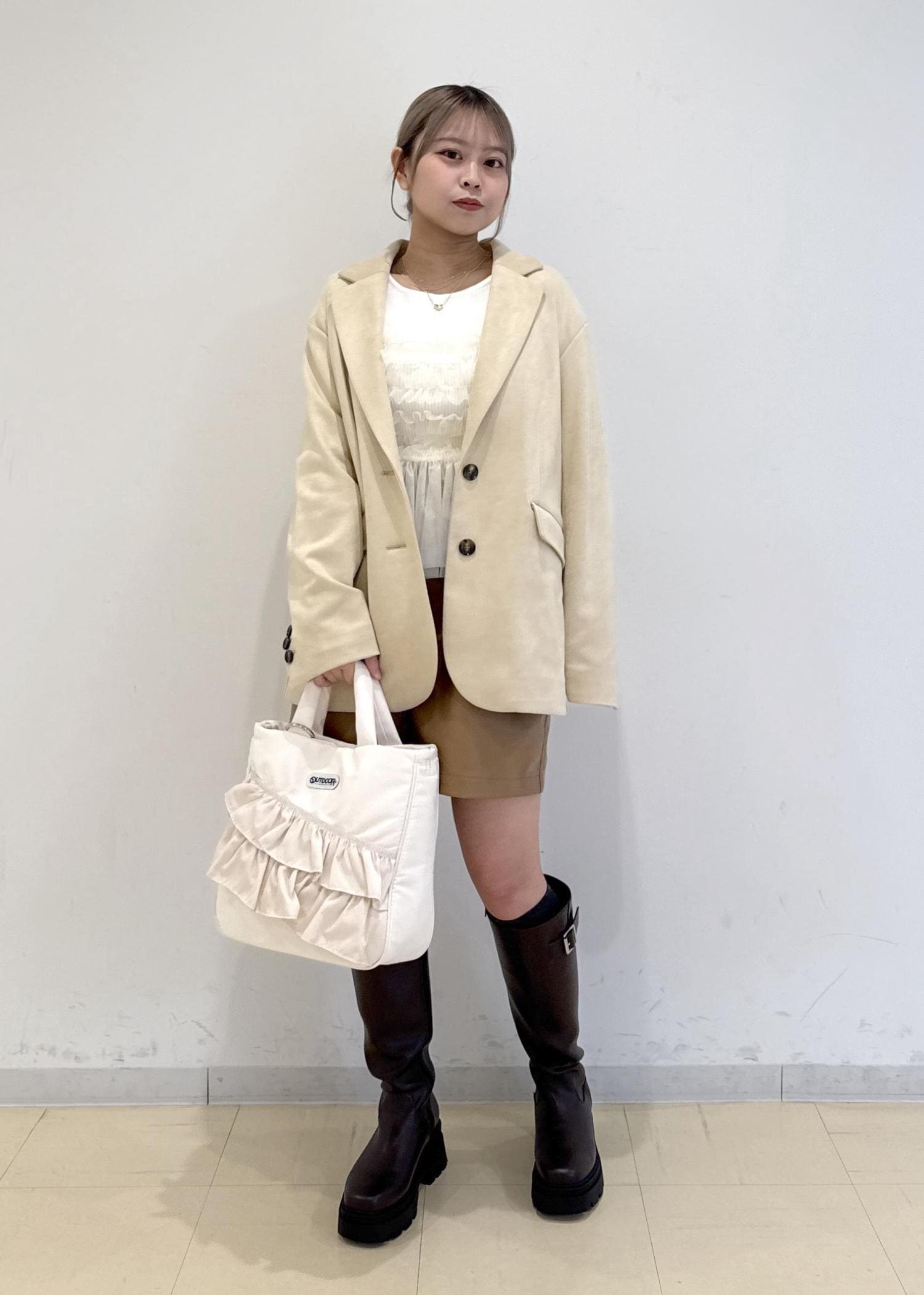 フリルやチュールなどを使い、春らしい、甘めなコーディネートになるように意識しました!