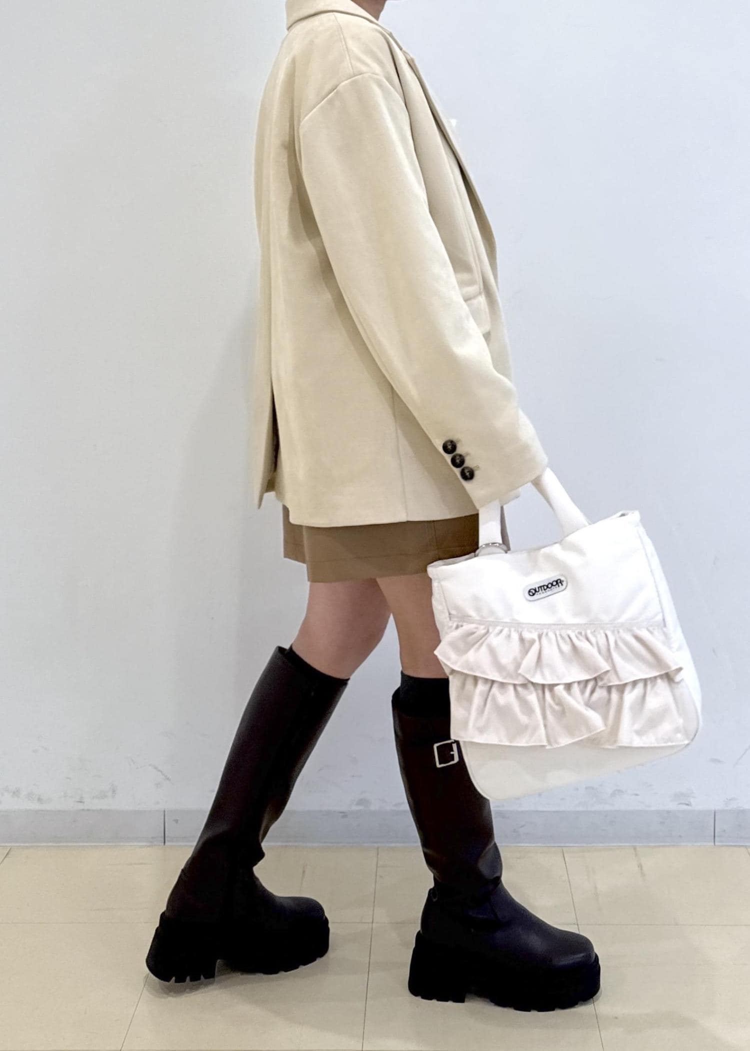 予約VIS【OUTDOOR PRODUCTS】VIS別注2WAYフリルトートバッグキナリ / F¥8,580レビュー500mlのペットボトルやiPadがしっかりと入るサイズ感です。