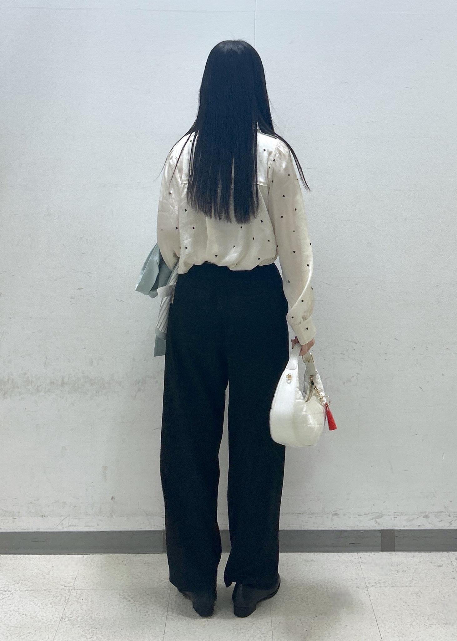 ハートの柄は刺繍になっておりますが裏はチクチクしません。全体的にフェミニンなデザインですがスタンドカラーなので首元はスッキリ見せられます。身長166センチで脚の付け根くらいの丈感で袖は手の甲まで隠れるくらいの長さです。 -