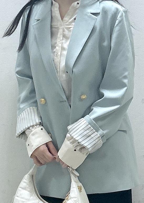 VIS【美easy】コンフォート金ボタンジャケット/イージーケア・UVケア・セットアップ対応ライトグリーン / M¥8,899レビューゴールドのダブル釦がクラシカルで上品なジャケットです。ジャケットなのに自宅でのお洗濯可能!シワになりにくいので干して乾いたら直ぐに着られます。身長166センチでお尻が半分隠れるくらいの丈感です。セットアップ対応なのでセレモニーやお仕事にも◎