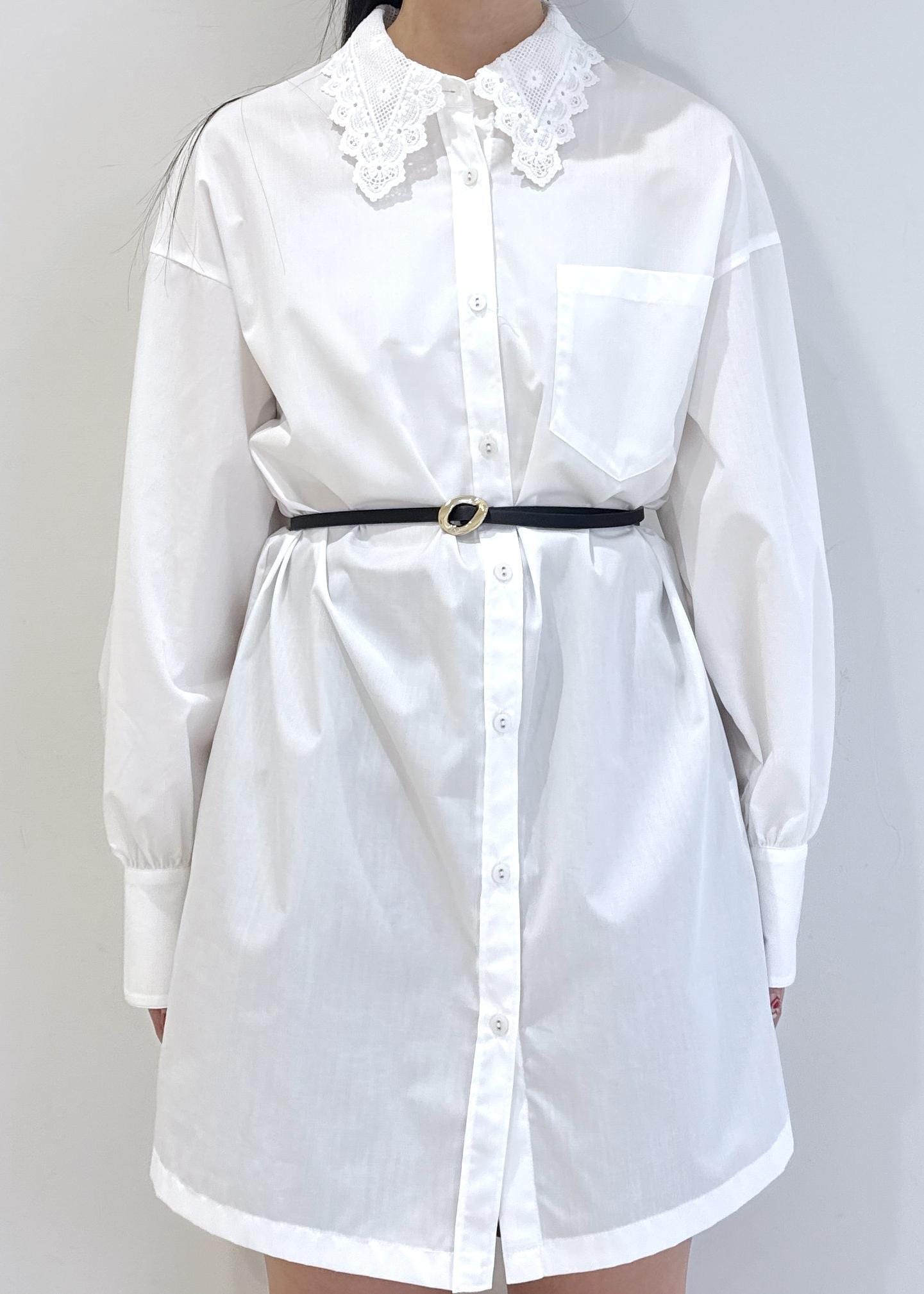 VIS襟レース付きミニ丈シャツワンピホワイト / F¥7,689レビューかなり透け感があるので、中にインナーパンツ等が必須です。サラッとした生地感で着心地はいいです◎