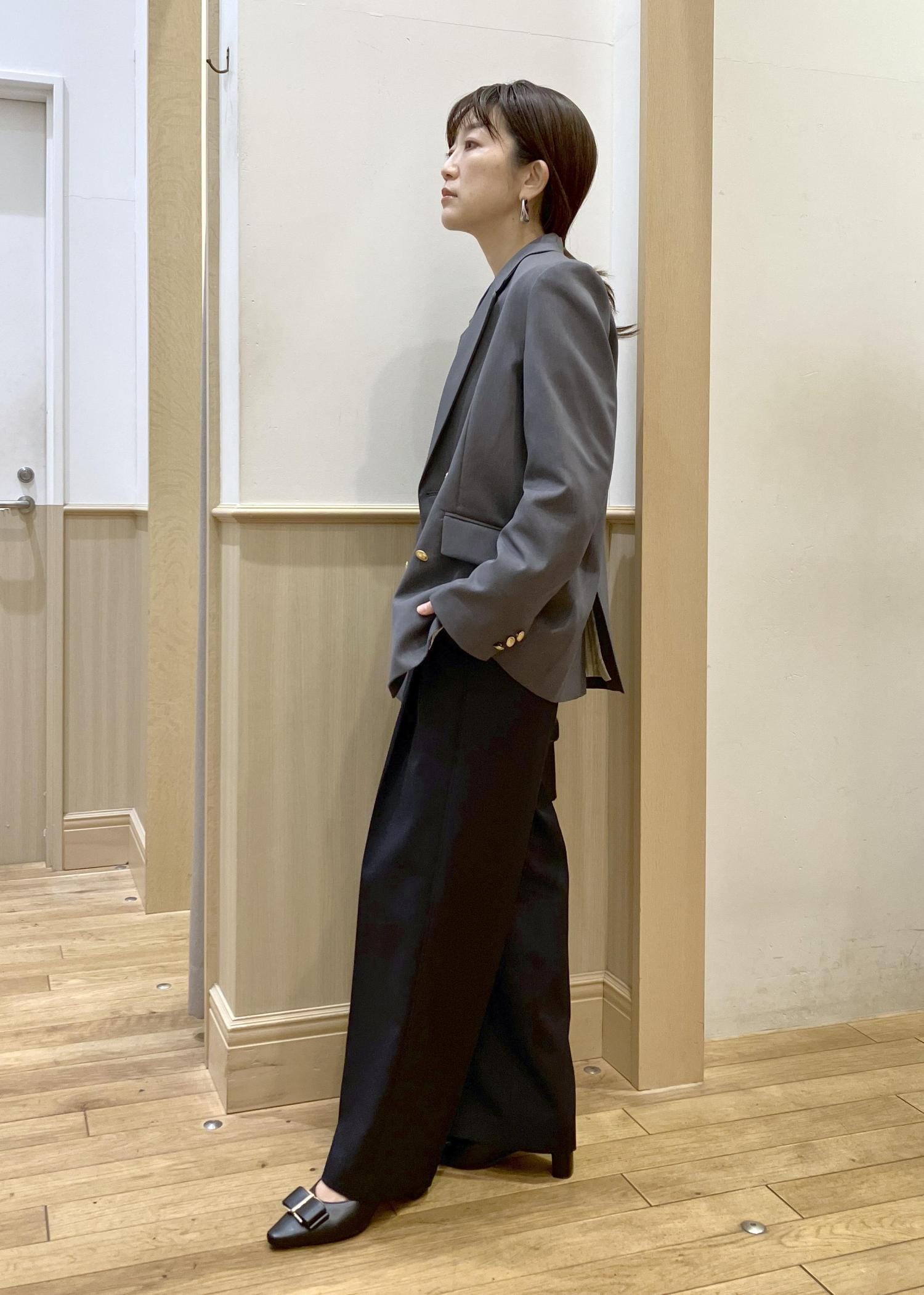 VIS【美easy】コンフォート金ボタンジャケット/イージーケア・UVケア・セットアップ対応グレー / S¥8,899レビュー身長155cm,Sサイズ着用。