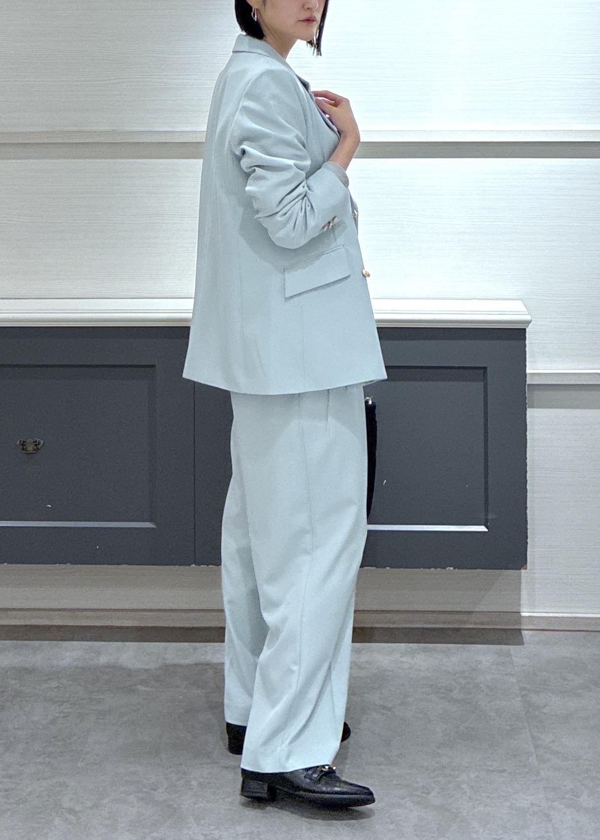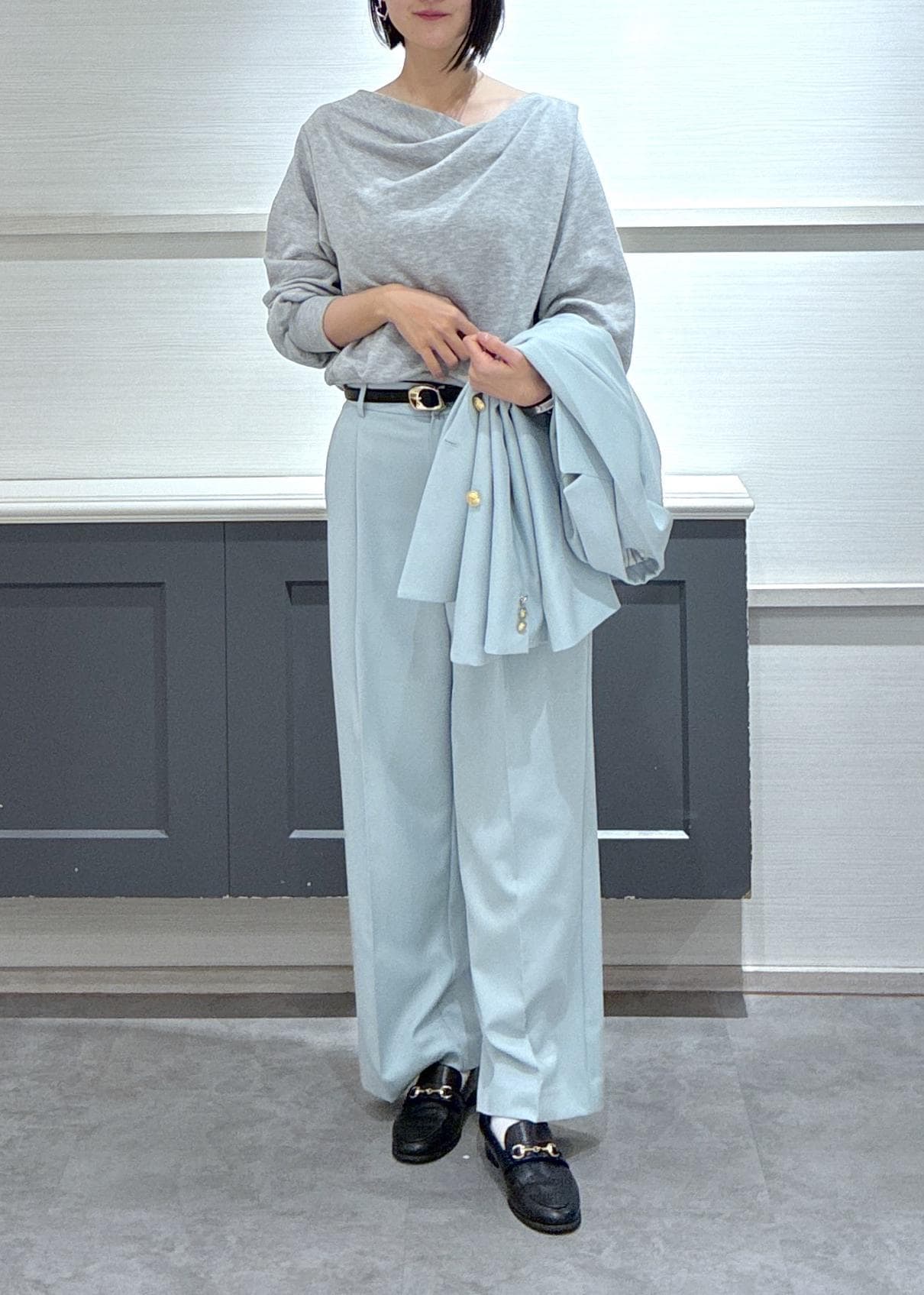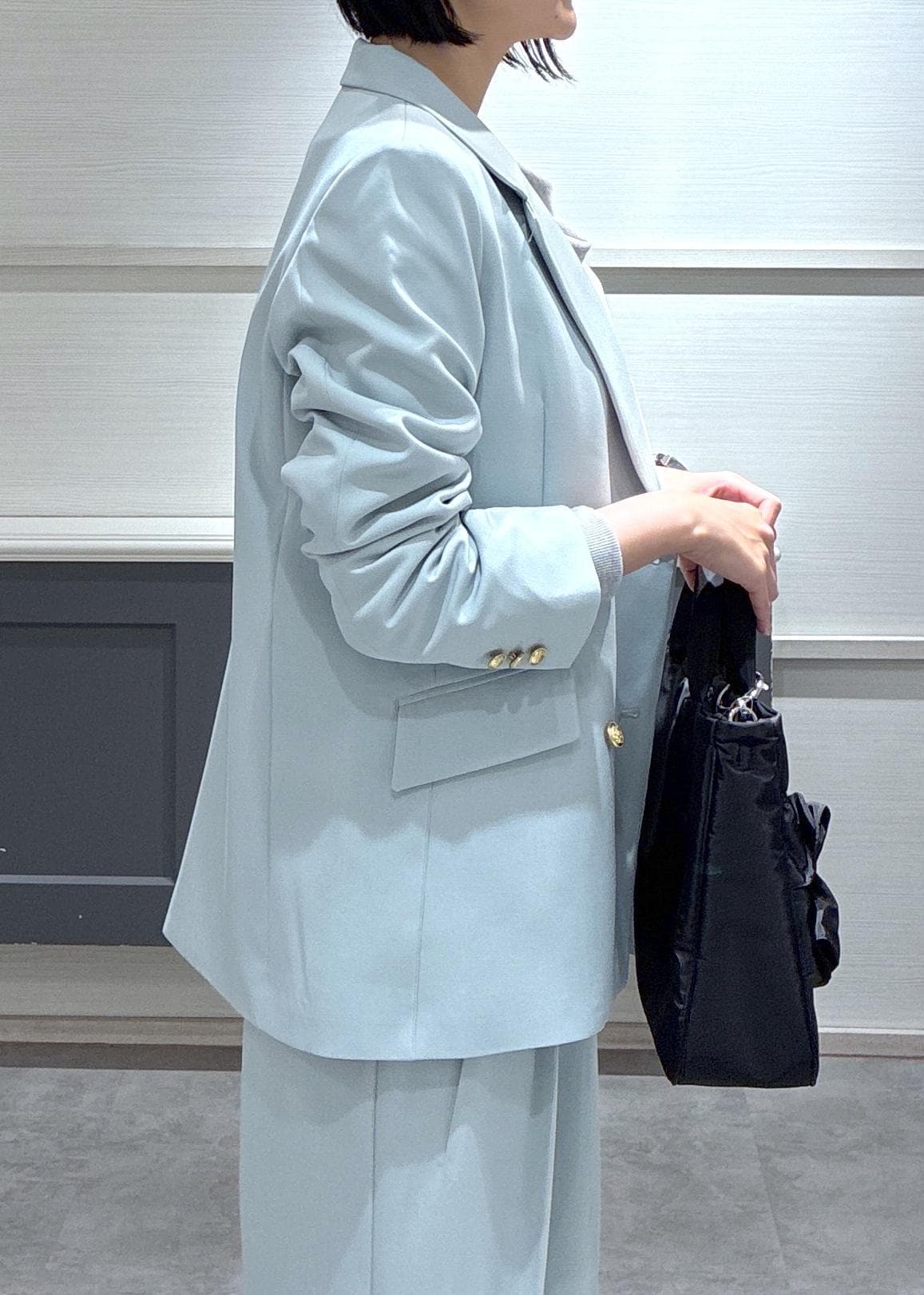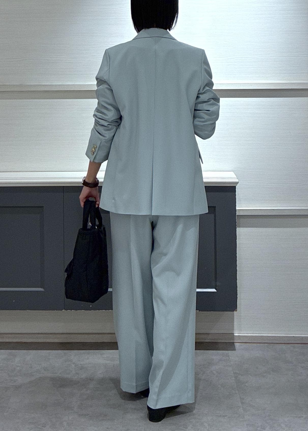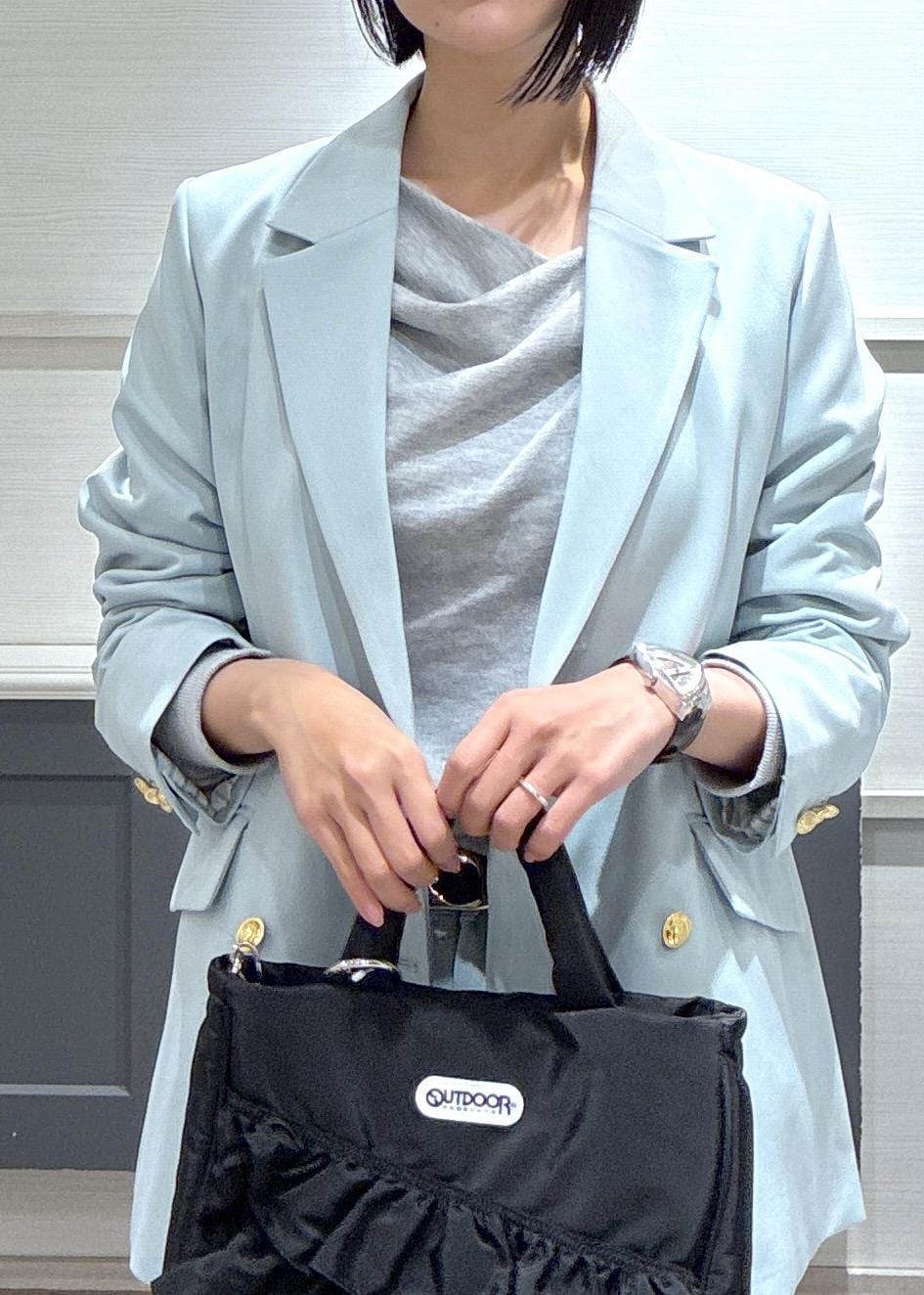 爽やかなグリーンのセットアップをかっちりし過ぎないようにインナーはデザイン性のあるドレープトップスを合わせて、フリルがモチーフのバッグでカジュアルダウンさせました♡