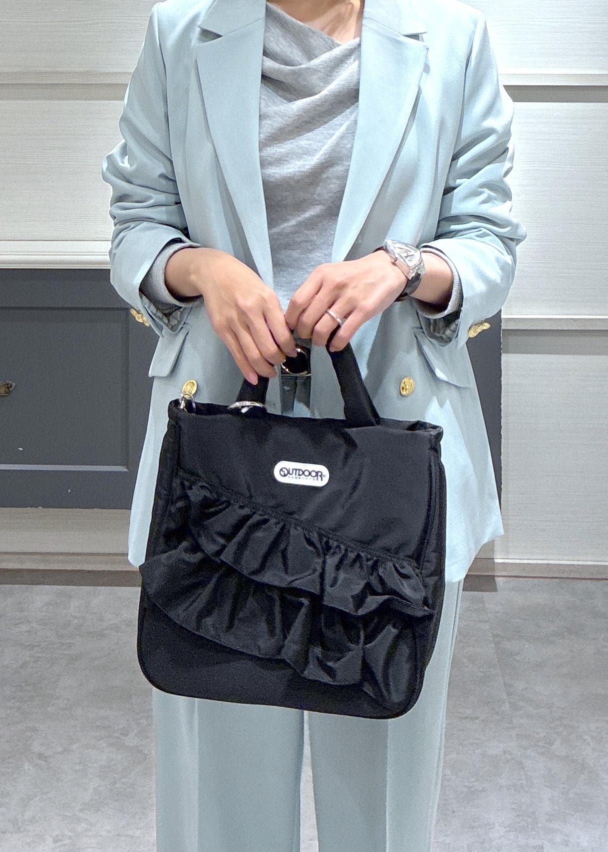 予約VIS【OUTDOOR PRODUCTS】VIS別注2WAYフリルトートバッグブラック / F¥8,580レビュー見た目以上にしっかり入り、長財布やスマホはもちろんのことメイクポーチやペットボトルも入るので小旅行や1日のお出かけも安心して使用出来ます♡