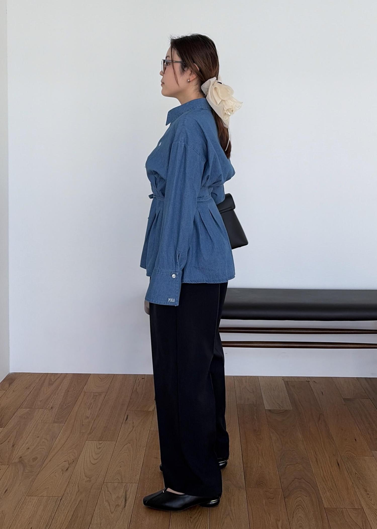 NEW! 予約VIS【POLO BCS】ベルト付きウエストタックシャツ/WEB限定カラーサックス / F¥6,930レビュー身長150センチ、ヒップまるまる隠れる丈感。