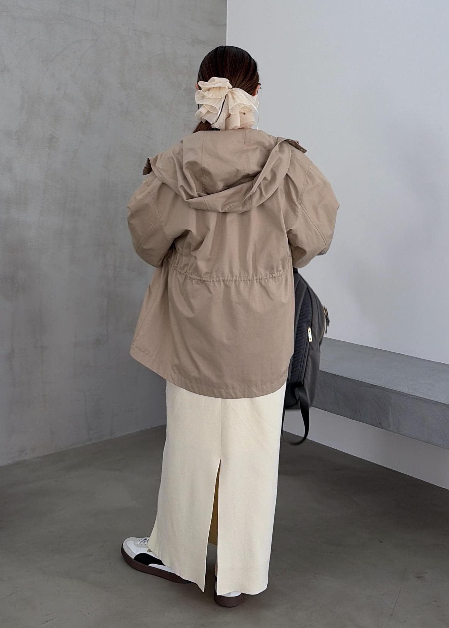 ウエスト部分絞れるので、小柄さんでもバランスよく着用しやすいアウターです◎ -