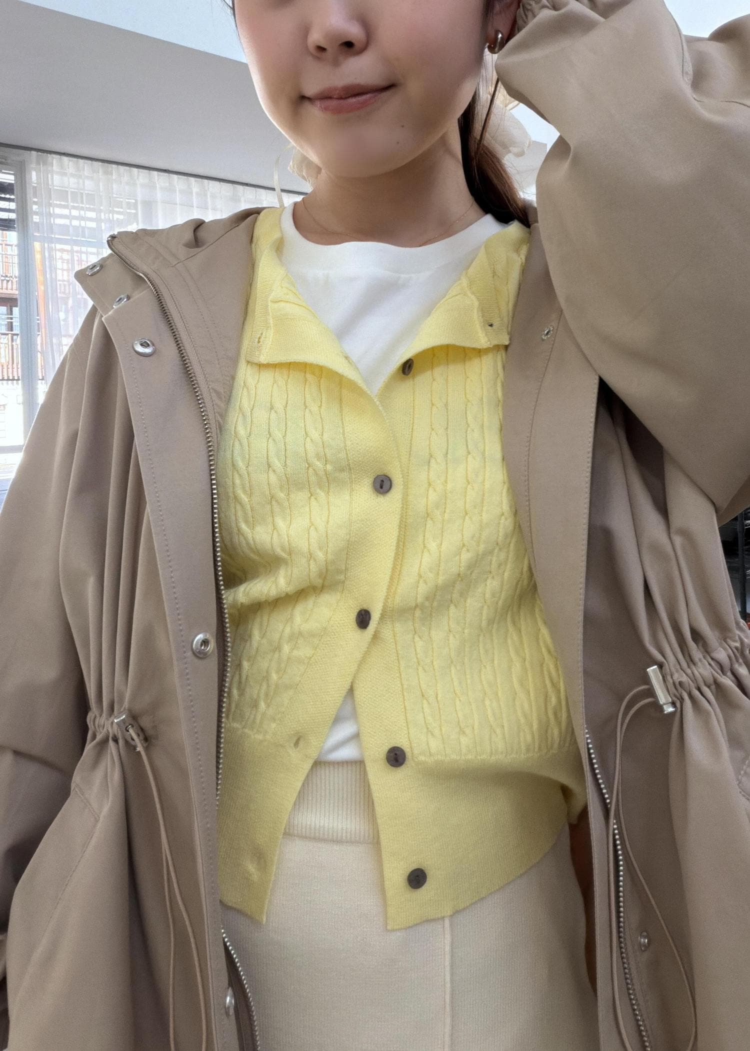NEW! 予約VIS【POLO BCS】ミニケーブルノーカラーカーディガンイエロー / F¥6,930レビュー身長150センチ、腰にかかる丈感で