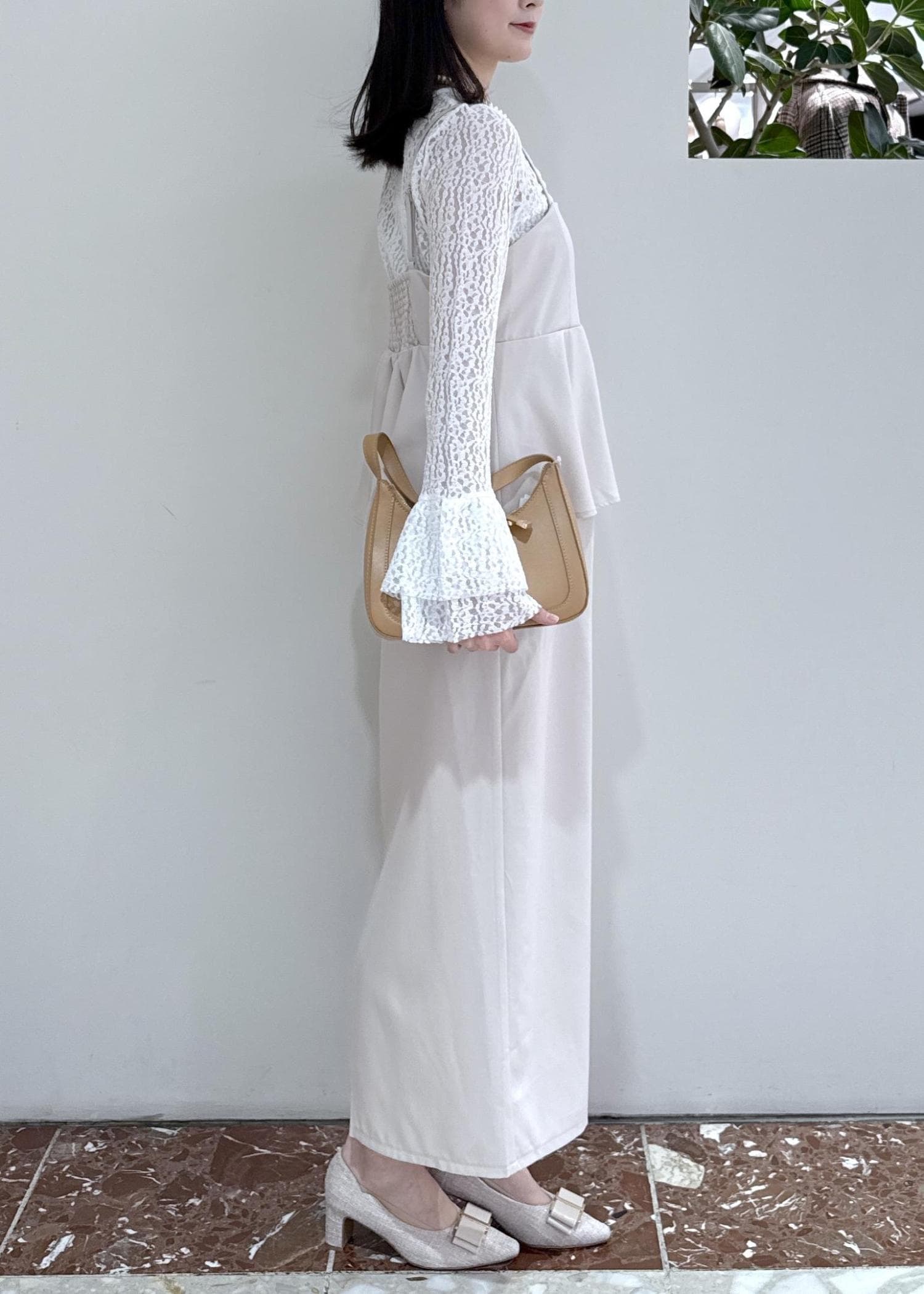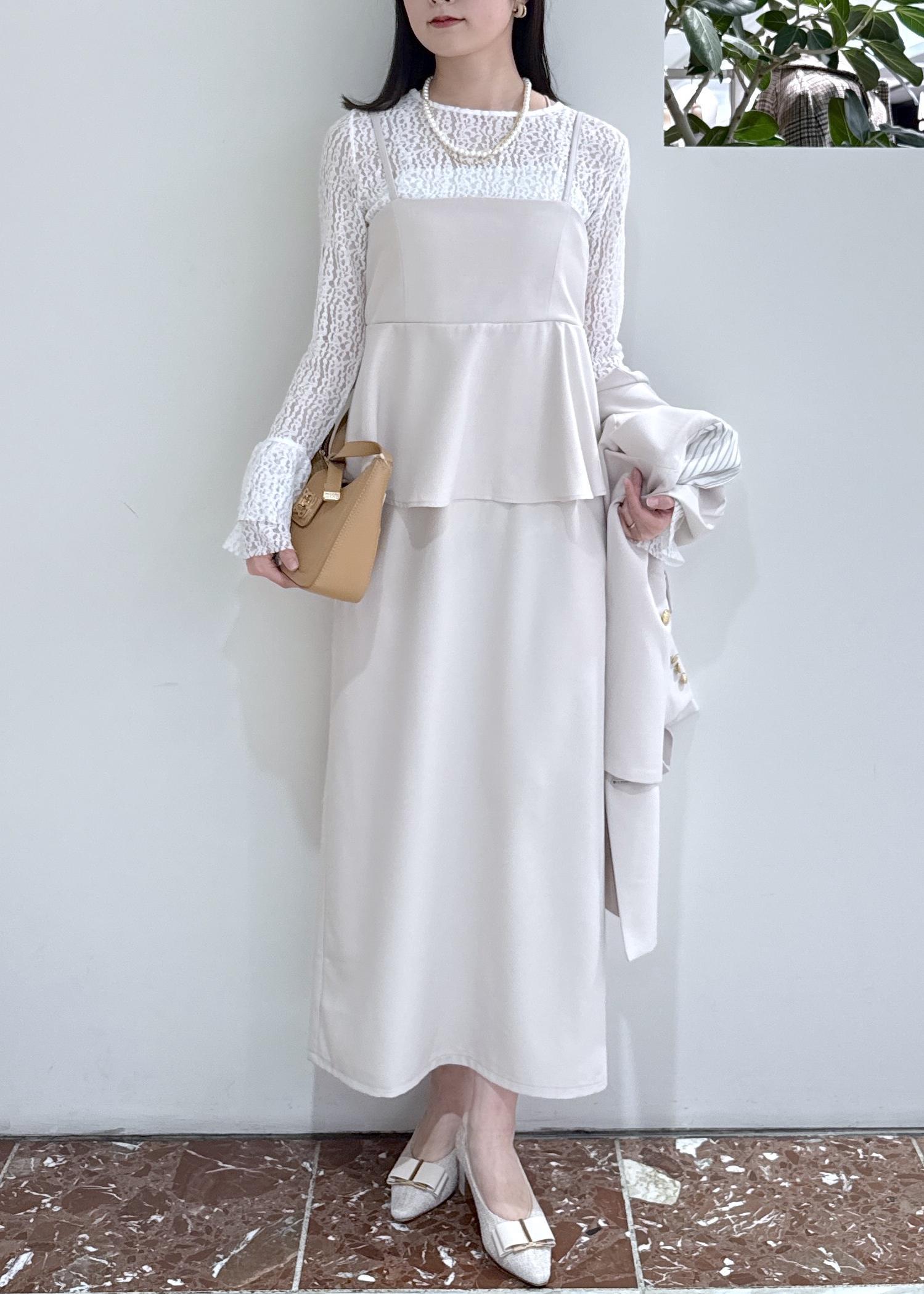 VIS【WEB限定】美easyコンフォートツイルペプラム切替キャミワンピース/イージーケア・UVケアベージュ / F¥8,899レビュー164cmで足首が見える着丈です。
