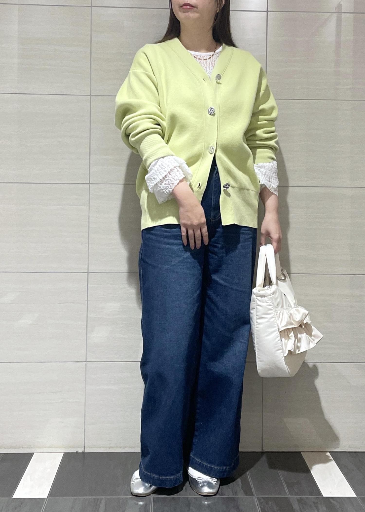 VIS釦アクセントコクーンカーディガンライトグリーン / F¥6,589レビュー163cm骨ストでヒップが半分くらい隠れる丈感です。