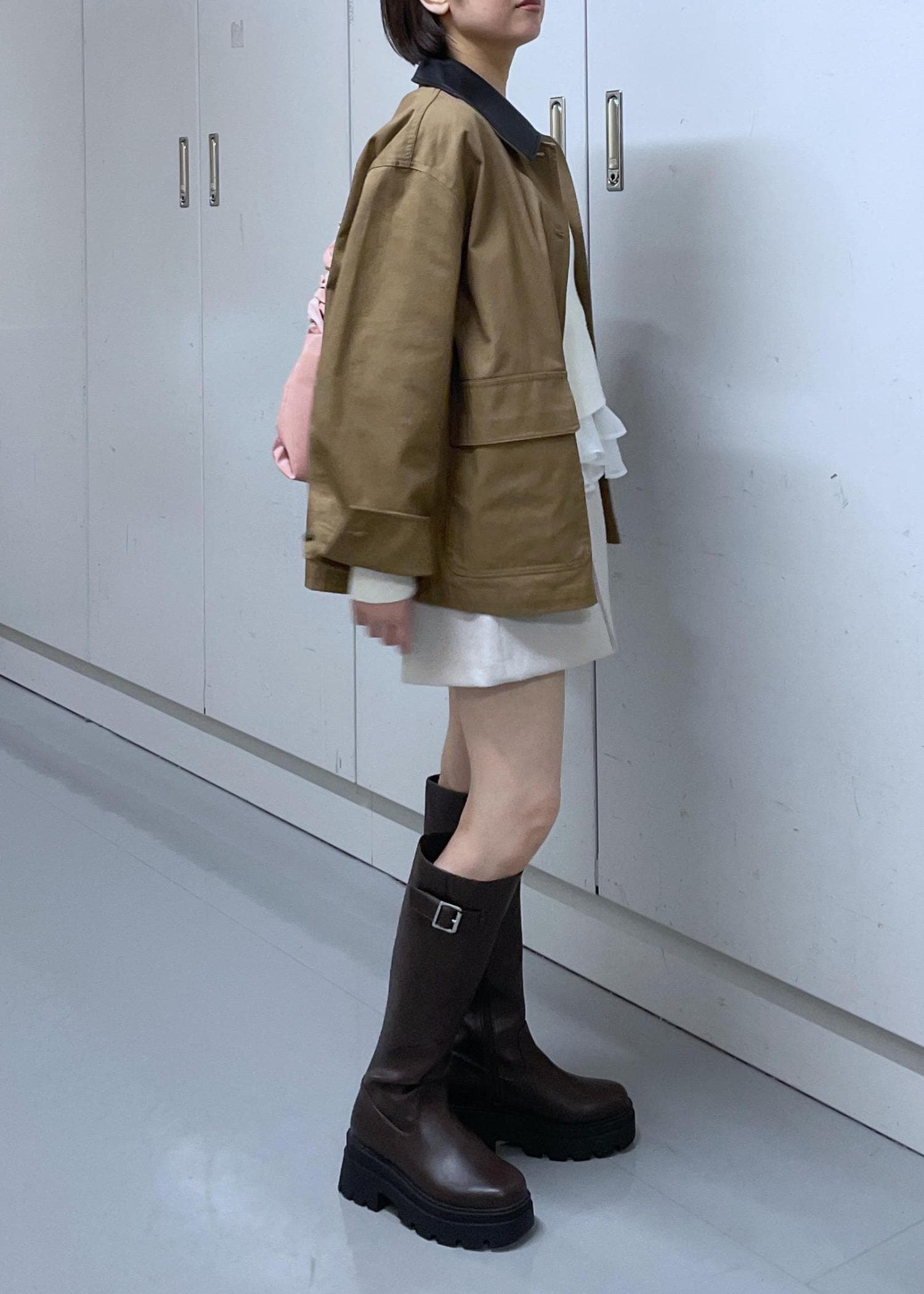 短めの着丈なので、タイツ合わせかロングブーツ合わせが安心感あります。