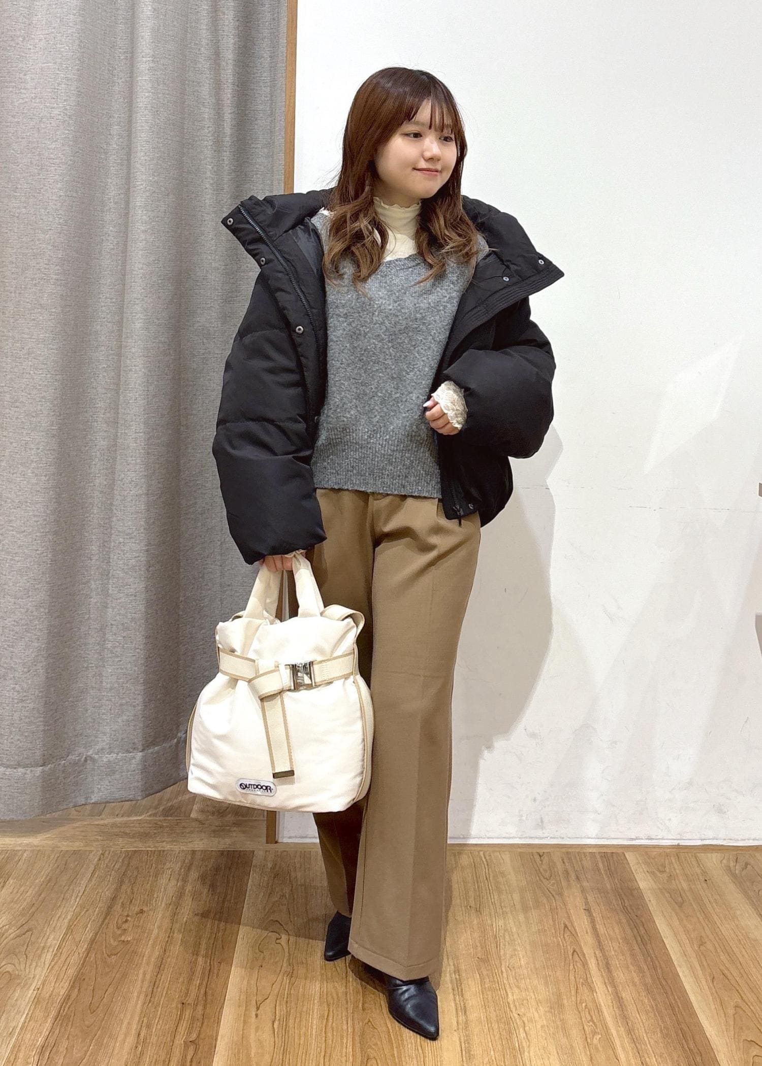 防寒具を着用すると埋もれがちな低身長さんですが、こちらのアウターはモコモコと厚みがありながらも、丈感やシルエットがスッキリしているので、温かさとシルエットを両立することができます◎