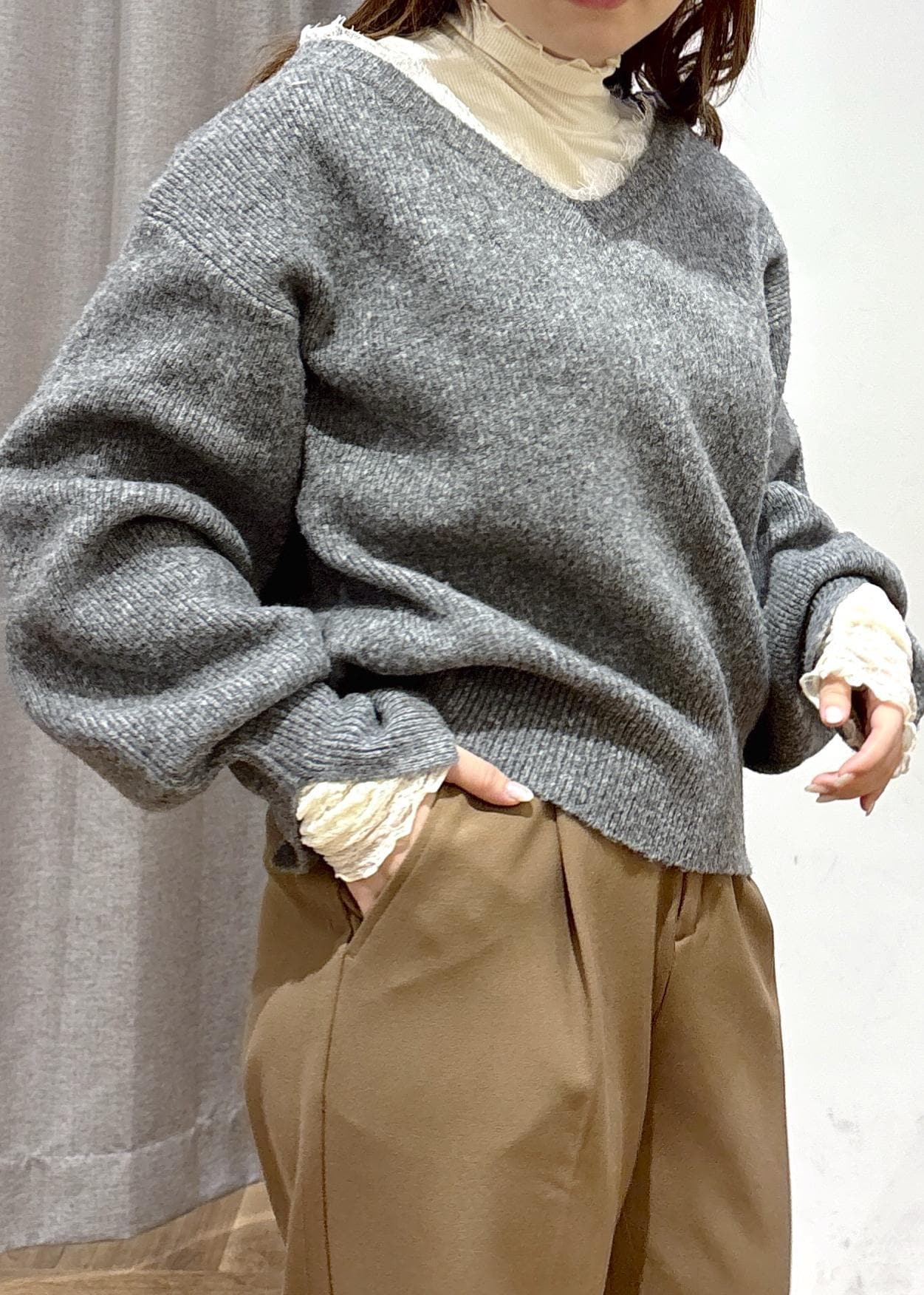 アウトレット 2BUY10%OFFVISVネックレースニットプルオーバーグレー / F¥2,965レビュー【着用感】