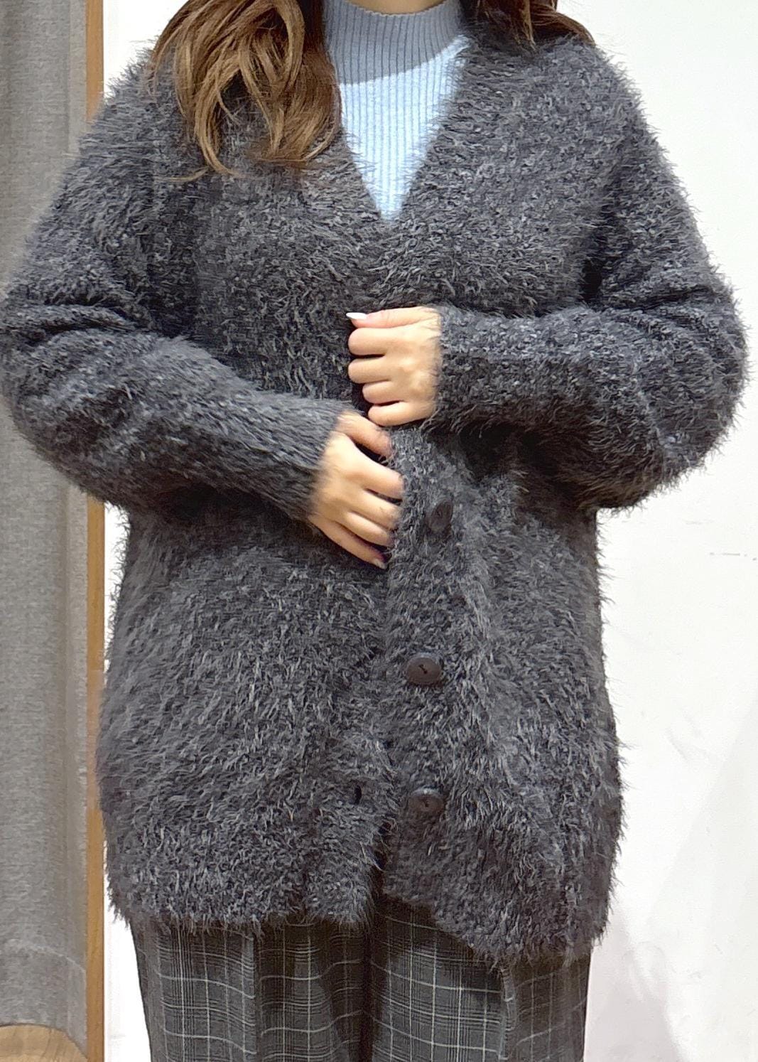 モコモコふわふわとした素材が気持ちよく、またとてもあたたかいカーディガンです。 -
