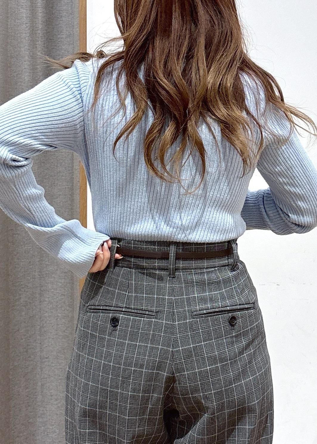 VIS【美得】スリーブ釦アクセントリブニット/WEB限定FSサイズ・静電気防止サックス / F¥4,389レビュー【着用感】