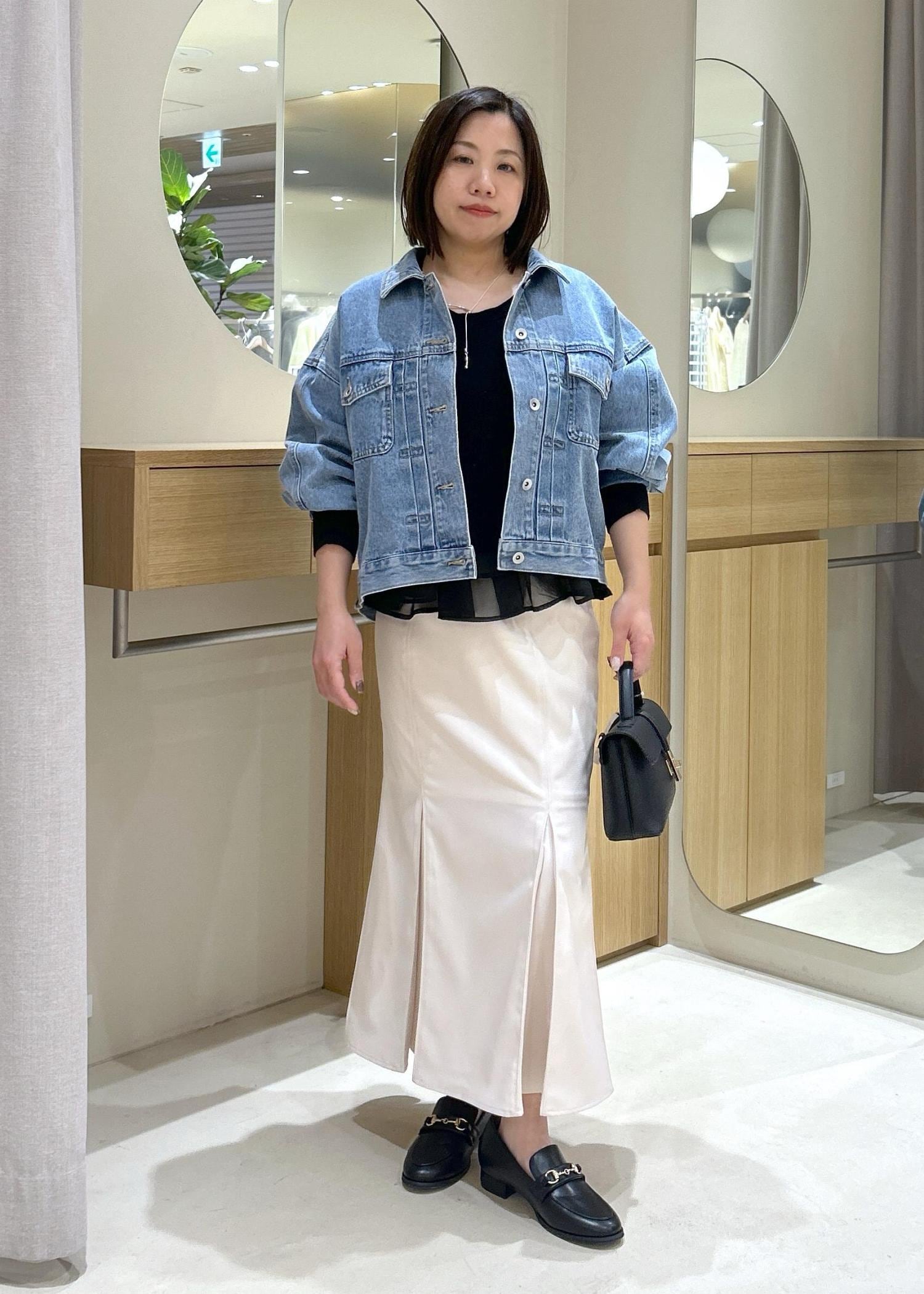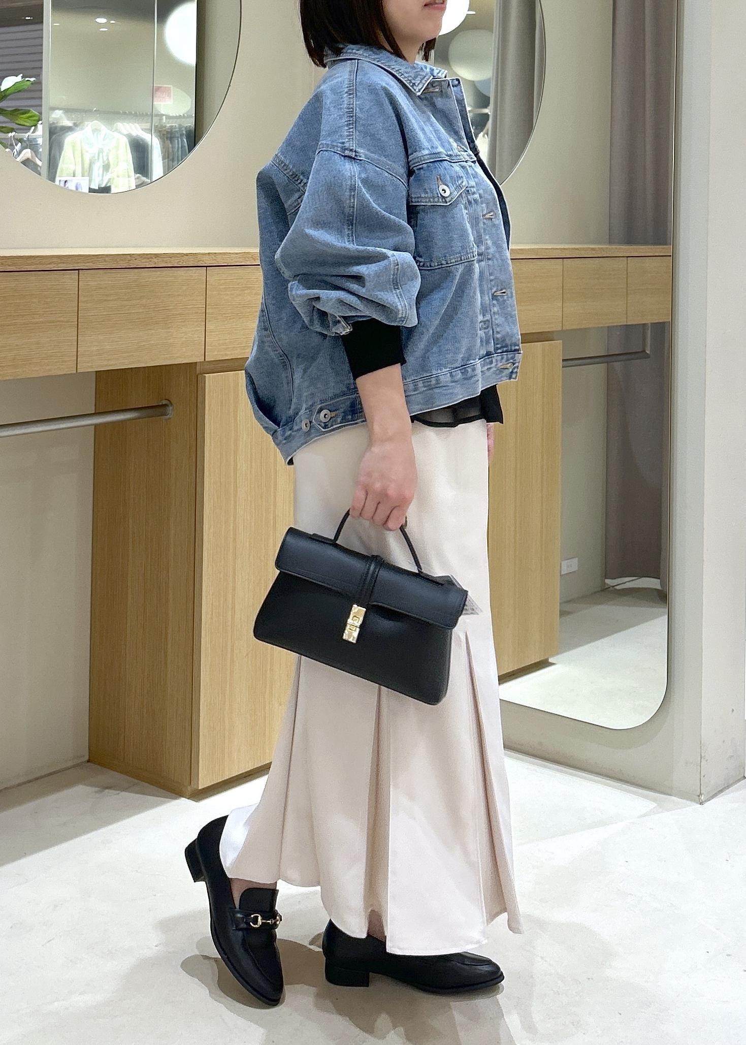 ホワイトのスカートと合わせて春らしい印象に。