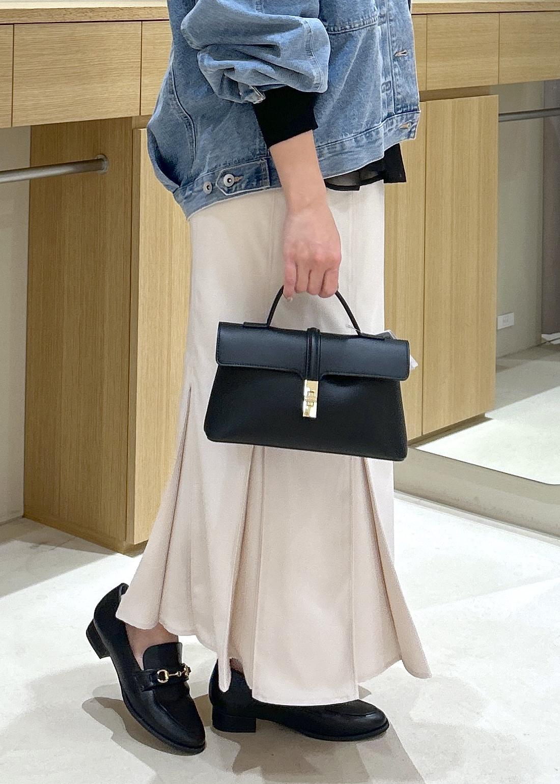 きちんと見えするバッグと靴を合わせ、黒をポイントに大人カジュアルにコーディネート。