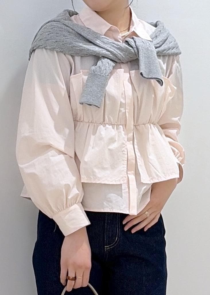 VISビスチェドッキングシャツ/イージーケアピンク / F¥5,929レビュービスチェがドッキングされたようなブラウス!