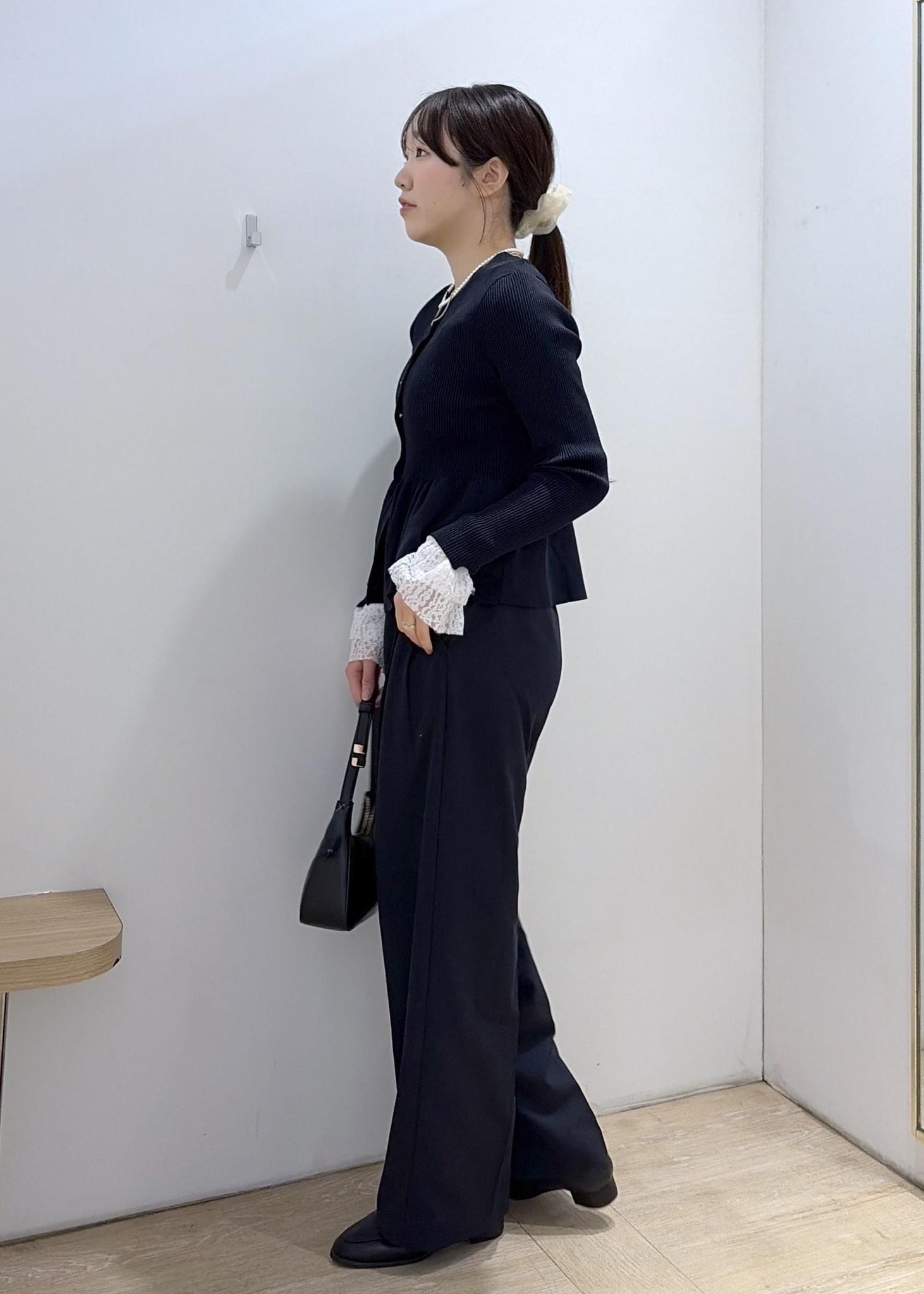 丈感は高めのパンプスと合わせても短すぎない長さです!ぺたんこの靴を履くと若干引きずる長さでした。