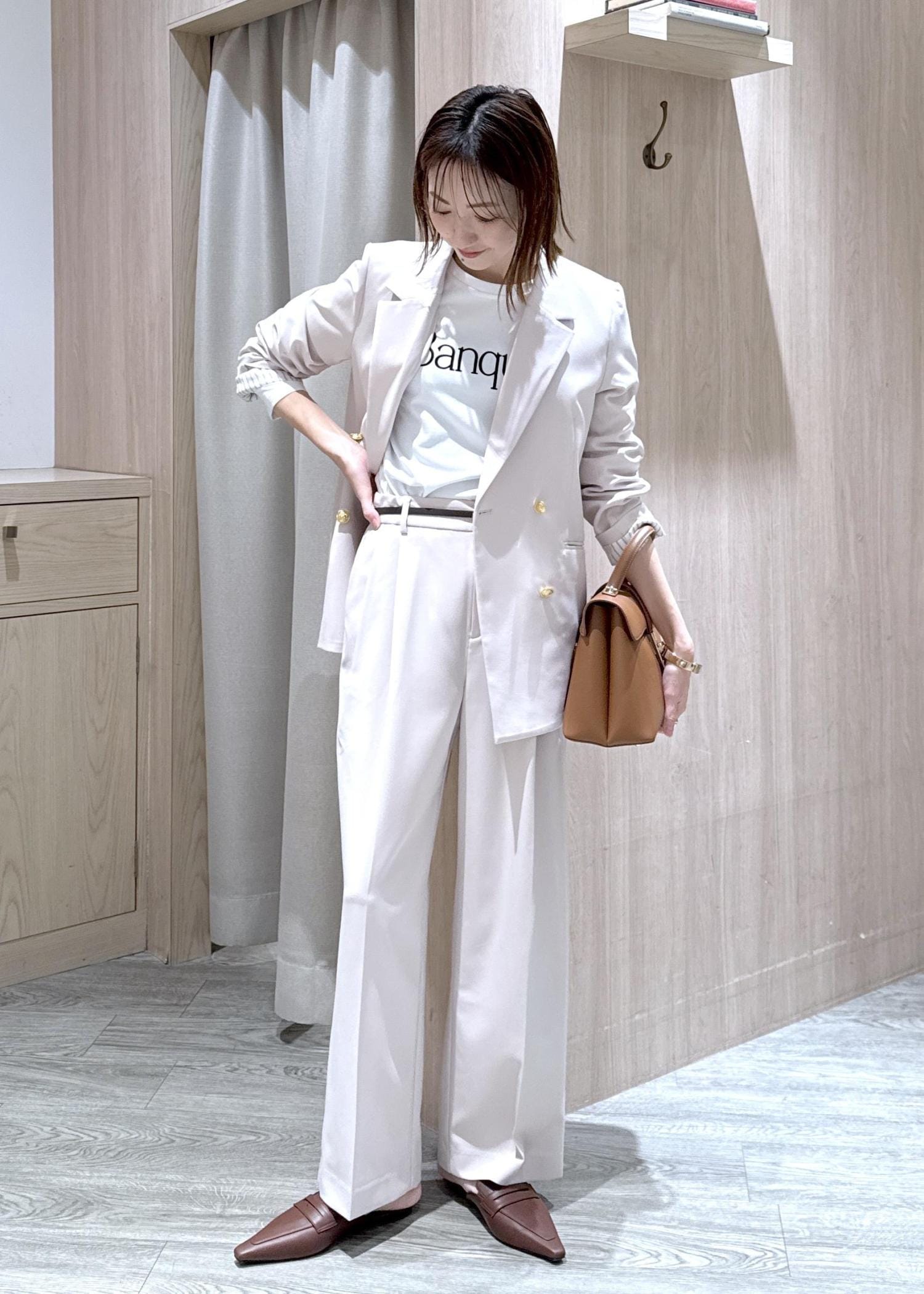 春らしいキナリのジャケットセットアップで、爽やかなオフィスカジュアルスタイルにしてみました♪