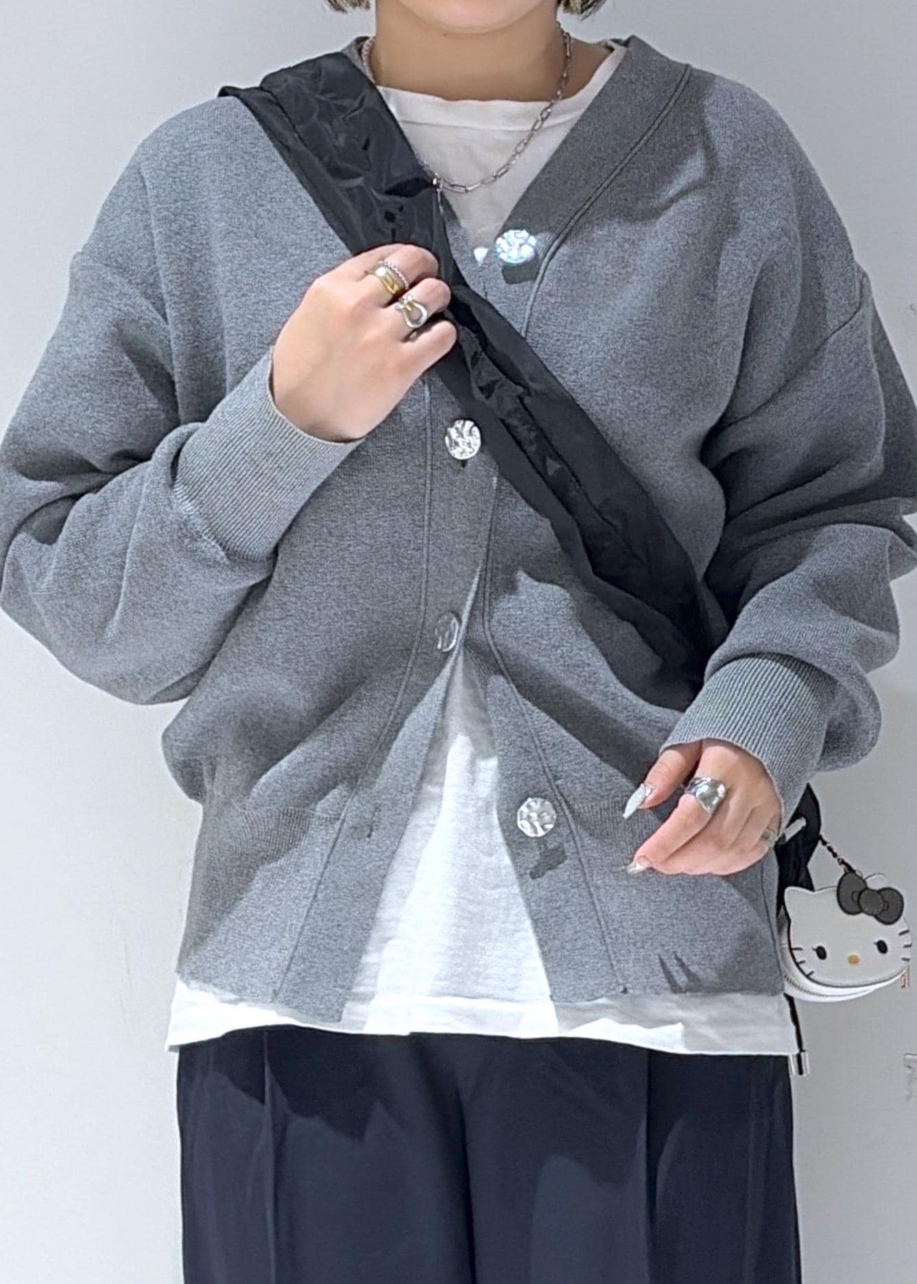 釦アクセントコクーンカーディガン