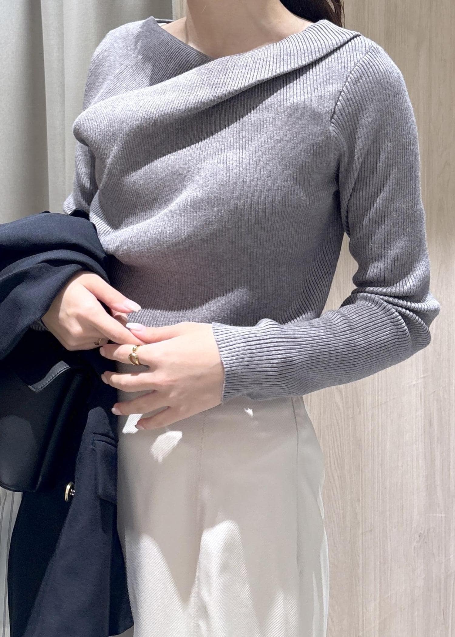 NEW!VISドレープオフショルダーリブニット/イージーケアグレー / F¥4,389レビューサラッとした生地間ですが、チクチク感は全くなく肌あたり優しい着心地です。